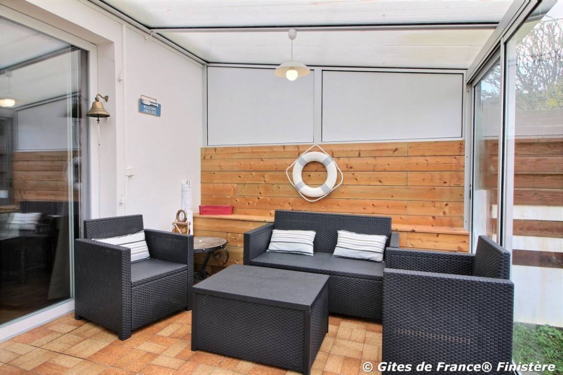 „Un très bel emplacement en bord de mer - plage et sentier à la porte du gite. Un très grand jardin avec barbecue. Une maison typiquement bretonne avec une véranda très pratique et très agréable.“