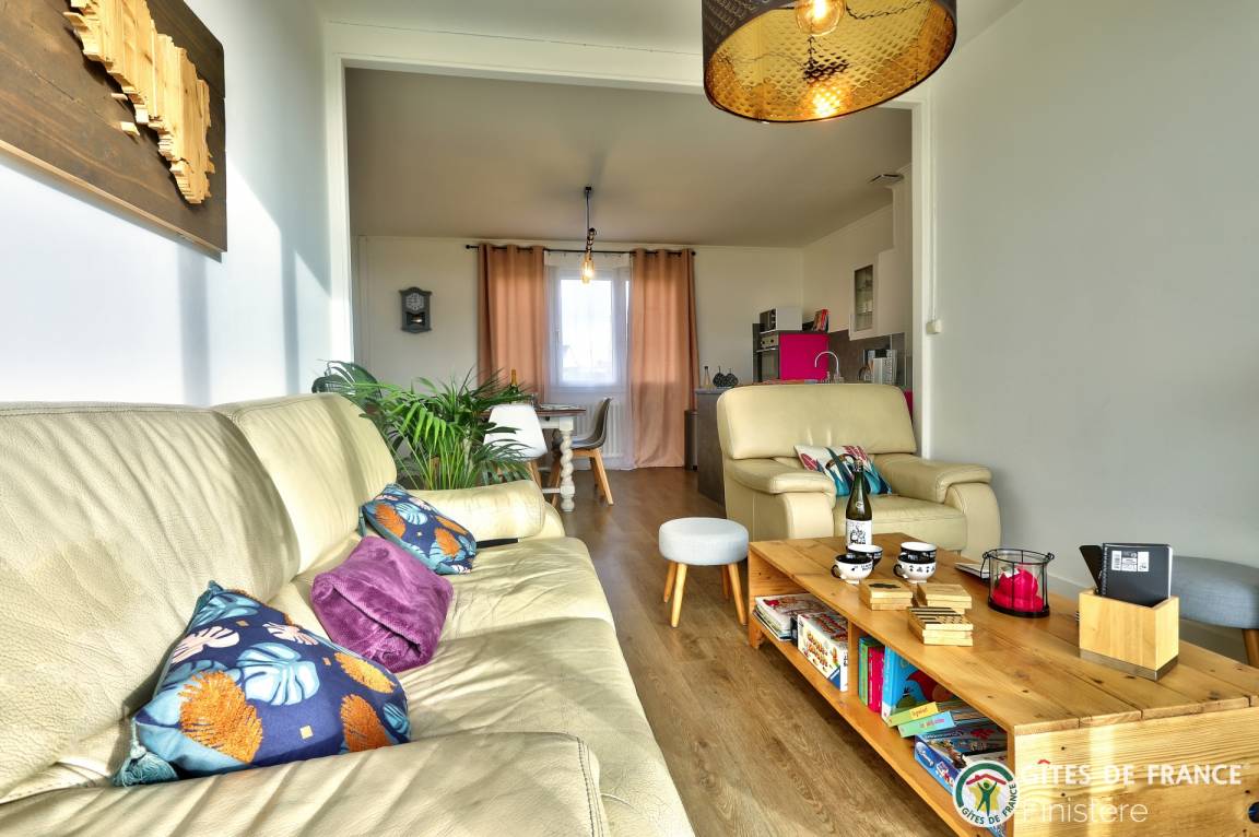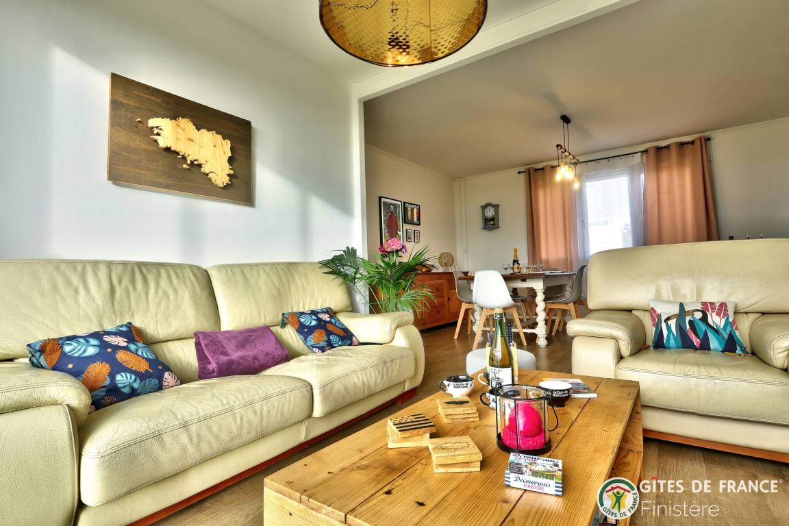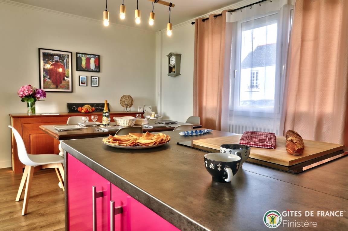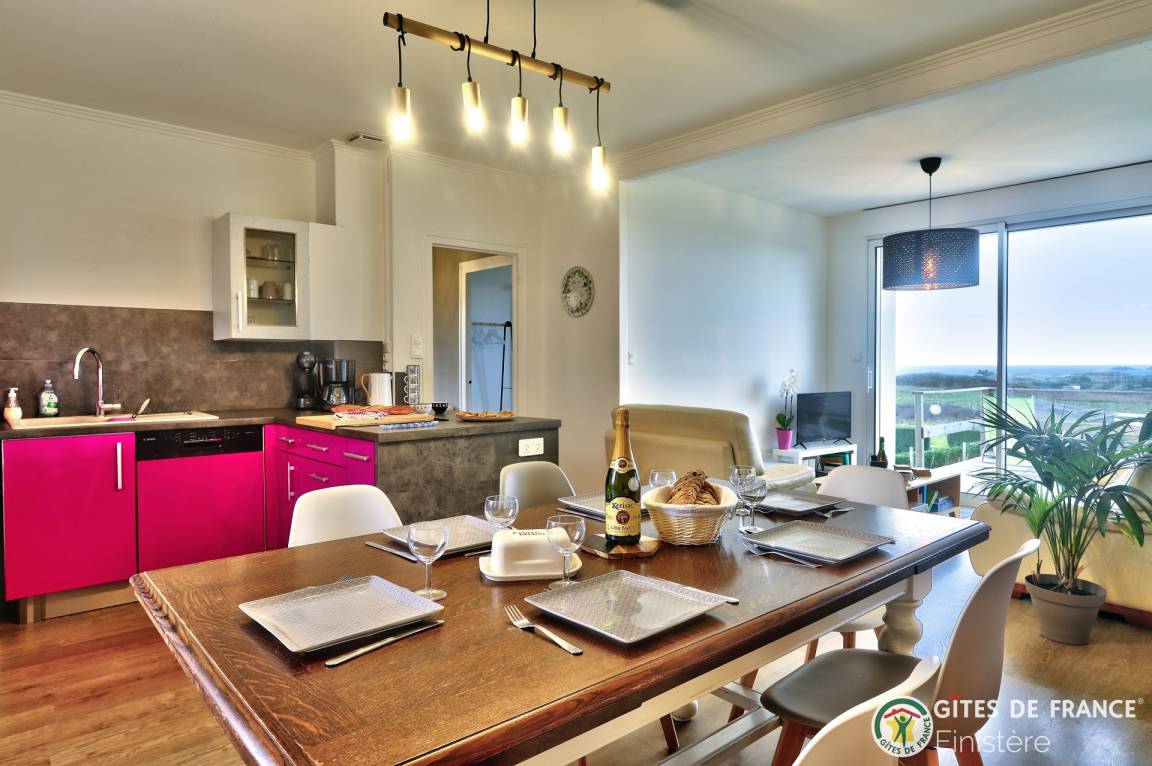 „Nous avons adoré cette belle maison, spacieuse, lumineuse, très bien équipé, avec une vue époustouflante sur l'océan. La nuit on peut apercevoir les éclats des phares bretons! L' ambiance est reposante, ideale pour se ressourcer. On dort très bien! Les sentiers côtiers sont tout près de la résidence et nous avons fait des belles balades sur la côte. Pas de wifi, mais c'est pas grave. A louer les yeux fermés!“