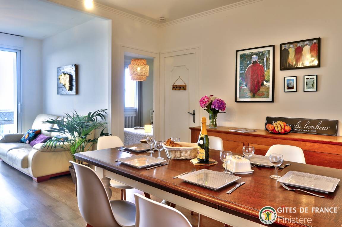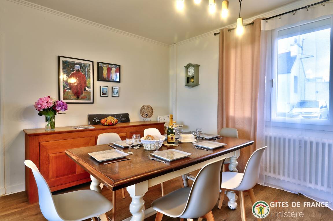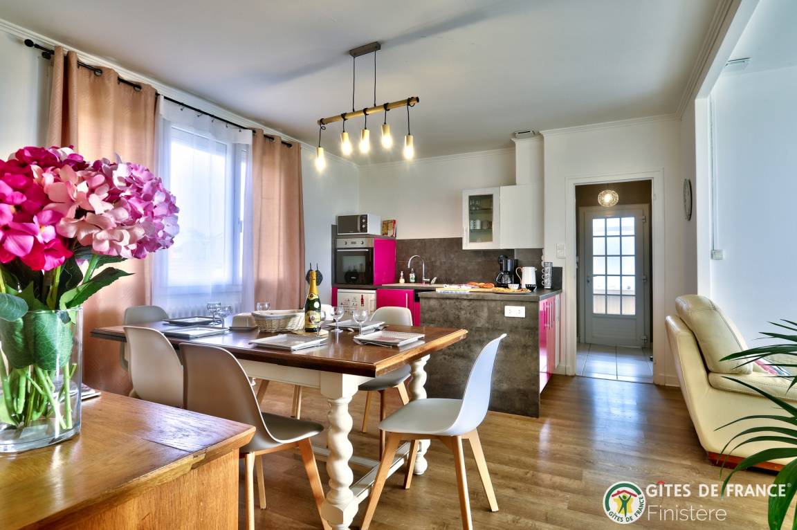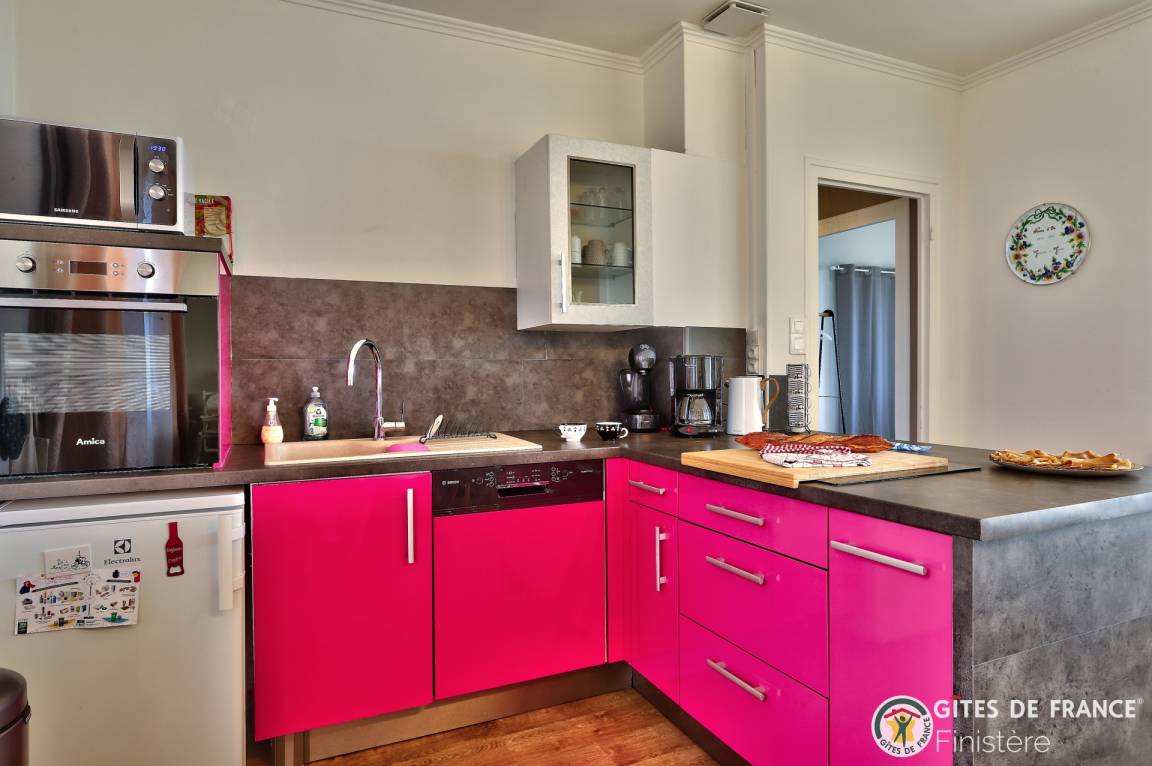 „Nous avons adoré cette belle maison, spacieuse, lumineuse, très bien équipé, avec une vue époustouflante sur l'océan. La nuit on peut apercevoir les éclats des phares bretons! L' ambiance est reposante, ideale pour se ressourcer. On dort très bien! Les sentiers côtiers sont tout près de la résidence et nous avons fait des belles balades sur la côte. Pas de wifi, mais c'est pas grave. A louer les yeux fermés!“