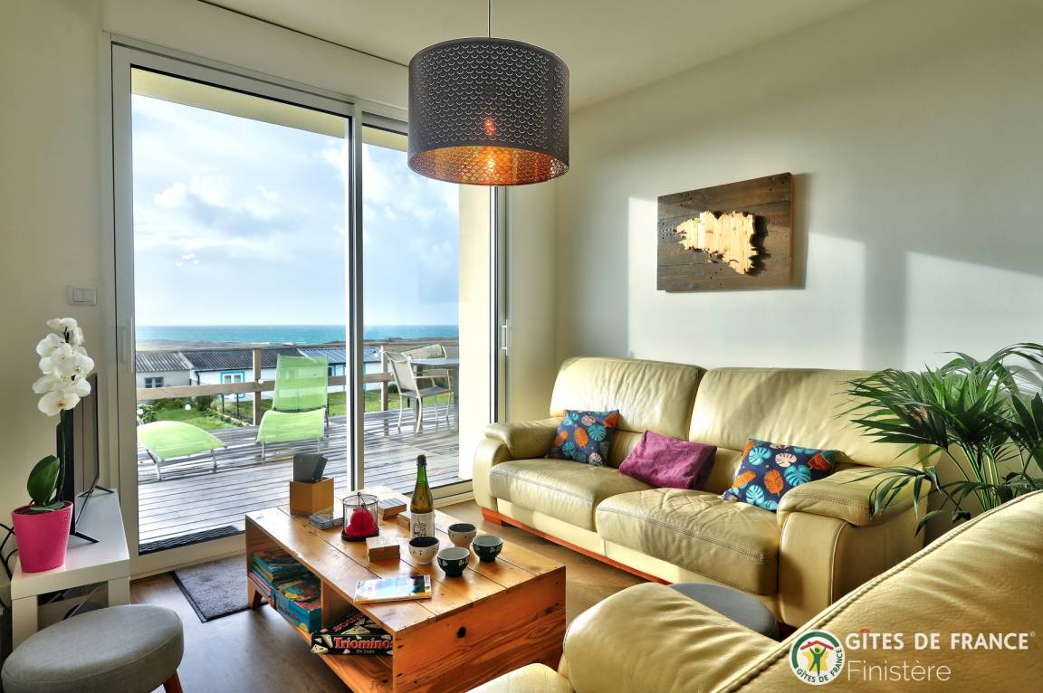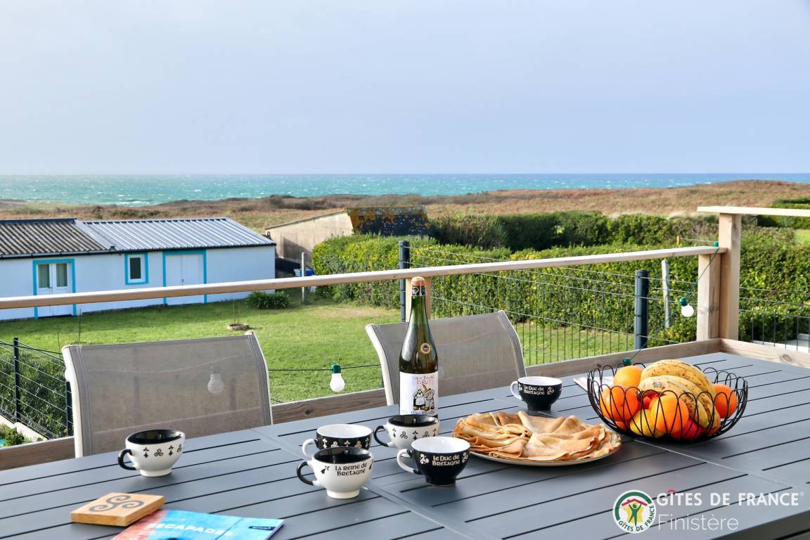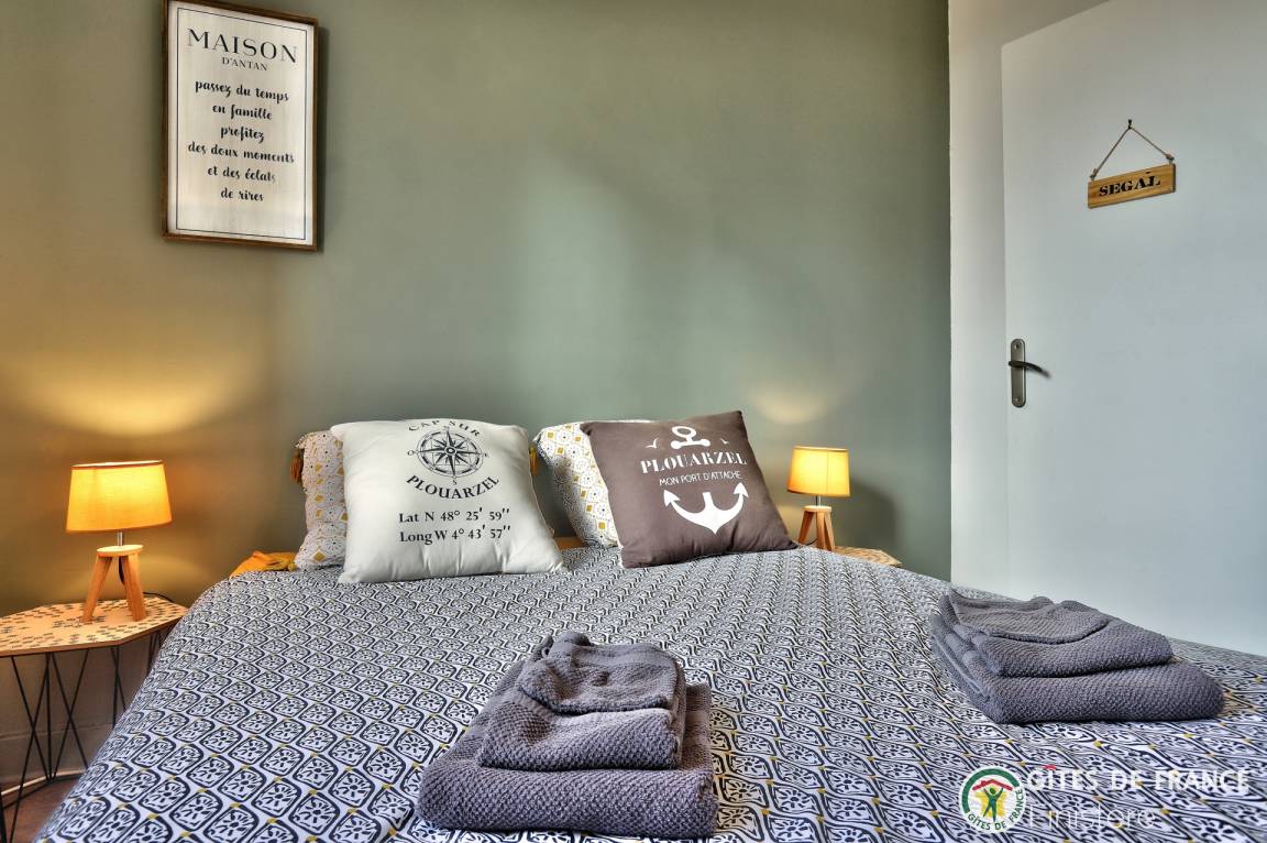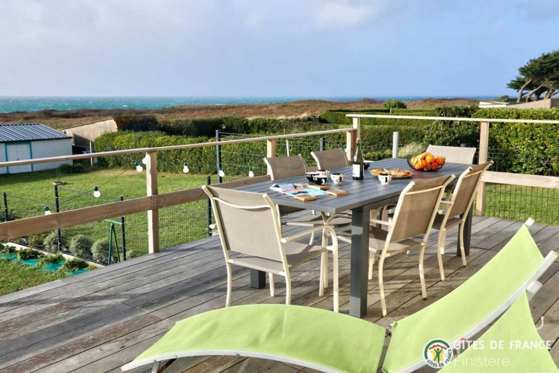 „Maison fort agréable, avec une très jolie vue sur la mer, à admirer par la baie vitrée du salon ou depuis la terrasse. Propre, confortable (bonne literie, douche spacieuse, matériel de cuisine de bonne qualité), bien équipée. Jardin avec portillon donnant un accès direct au sentier dans les dunes menant à la plage. Un très joli coin du bout de la France, loin des foules touristiques, avec de magnifiques paysages et de nombreuses petites plages et criques au sable blanc et aux eaux parfois turquoise. Venez sans hésiter !“