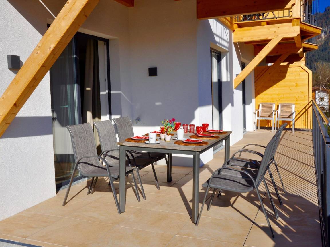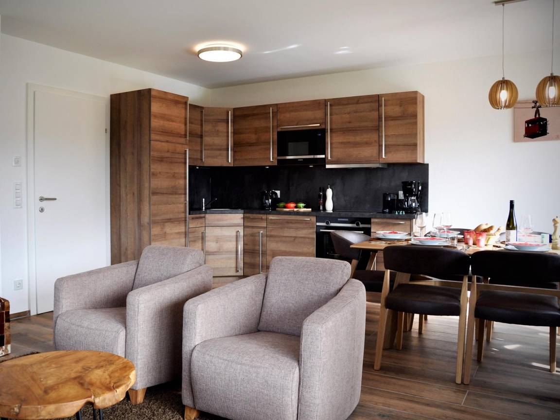 „Sehr schöne, praktisch eingerichtete und saubere Wohnung mit Bergblick (ja) am Ortsrand und trotzdem nah an allem. Super praktisch, dass wir keine eigene Bettwäsche und Handtücher mitbringen mussten.“