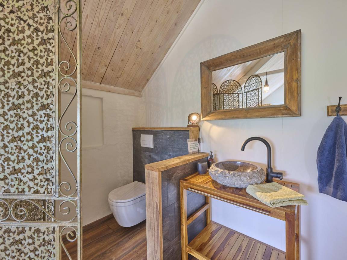 Gästeunterkunft in der 1. Etage(über steile Treppe): Schlafzimmer mit Doppelbett , Waschbecken, Toilette