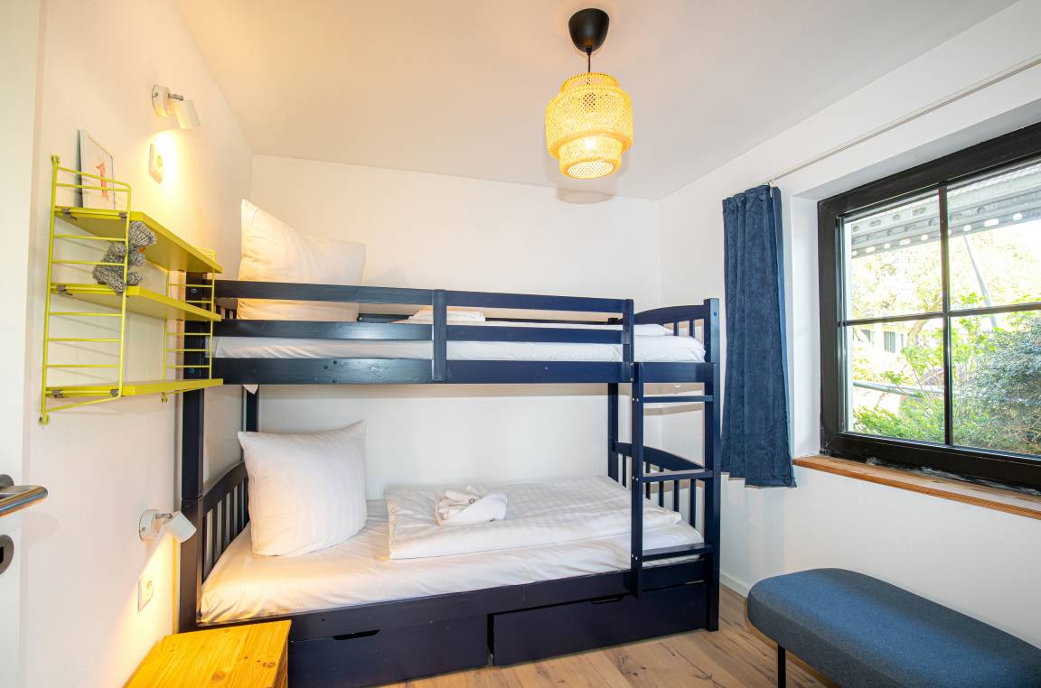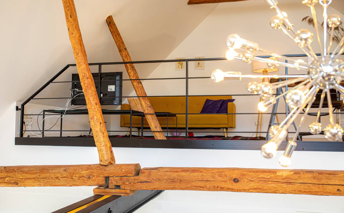 Dieses wunderschöne Domizil umfasst rund 105qm Wohn-, und Nutzfläche und ist für bis zu 5 Personen ausgelegt. Überall ist die Liebe zum Detail zu spüren, die die Eigentümer bei der Einrichtung des Objektes investiert haben. Ein absoluter Blickfang ist beispielsweise der lichtdurchflutete Wohnbereich, welcher sich über 2 Etagen erstreckt. Vom oberen Teil, welcher mit einer gemütlichen Lese-, und Fernsehecke ausgestattet ist, lässt sich ein einmaliger Blick auf die alten Deckenbalken des Hauses und den unteren Wohnbereich werfen. Das Haus verfügt neben 2 Schlafzimmern und einem Duschbad auch über eine offene Küche. Diese grenzt direkt an den unteren Wohnbereich. Eine Fußbodenheizung unter dem hochwertigen Echtholzfussboden sorgt rund ums Jahr für angenehme Raumtemperaturen und Wohlfühlcharakter.