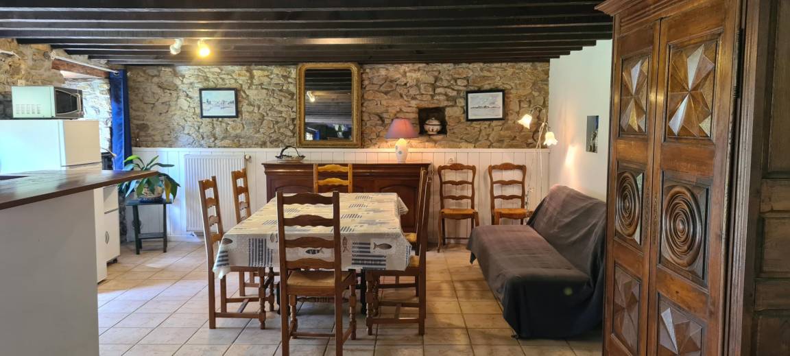 „Belle longère d’extérieur mais coté intérieur je ne vois pas comment elle peut comporter 2 épis. Pièces froides, éclairage insuffisant, globalement pas chaleureux. Le mobilier, la cuisine, la salle d’eau donnent l’impression d’une ancienne rénovation mais qui mériterait d’être revue. Dommage car la bâtisse est très typique.“