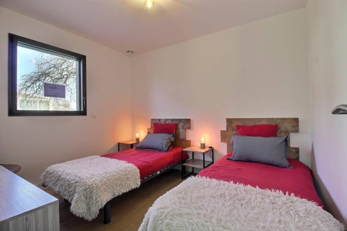 Ein Schlafzimmer mit zwei Einzelbetten (90 x 190 cm).