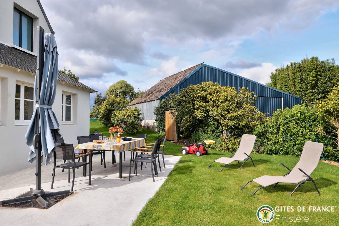 „Grande maison agréable, confortable, très bien équipée (vaisselle, cuisine, bonne literie, etc.) toute proche de la ferme des propriétaires. Ceux-ci sont très accueillants et nous avons assisté à la traite des vaches et avons vu les jeunes veaux. Le jardin est grand et bien équipé également. La situation du gîte permet de rayonner facilement alentours. Les commerces à Briec ou Quimper ne sont pas loin. Le lieu est calme, sur une voie sans issue.“