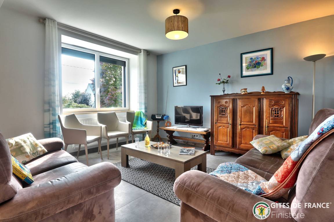 „Nous avons passé un agréable séjour. Nous avons apprécié l'accueil chaleureux de la propriétaire. Tout est fait pour se sentir bien dans cette maison de famille au calme récemment rénovée avec goût et très bien équipée. Ce gîte est très bien situé pour visiter le Finistère sud: Quimper Locronan Crozon Douarnenez.“