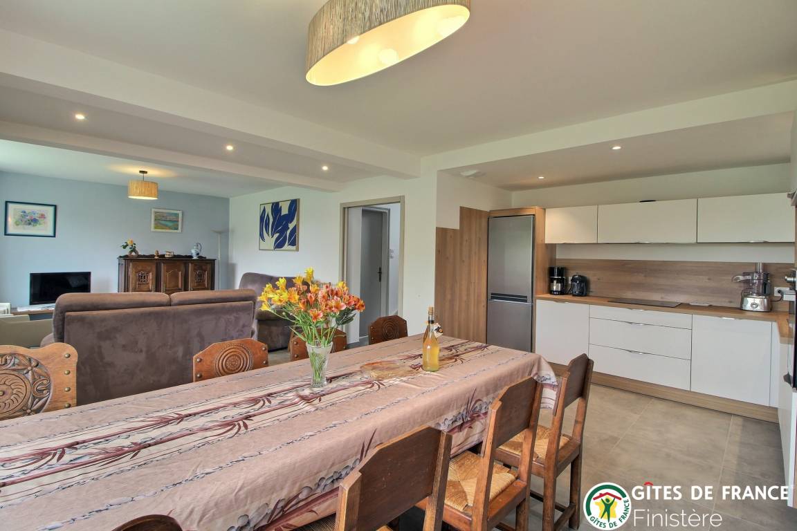 „Nous avons été accueillis par les propriétaires très sympathiques, une maison très propre et accueillante avec un bouquet de fleurs sur la table, dans le frigo une bt de cidre et des crêpes. grande cuisine avec une jolie vaisselle, ainsi que du matériel cuisine. nous avons été invités à visiter la traite Des vaches, avec les explications, les enfants étaient ravis ainsi que les grands, maison bien située, pres de Quimper ainsi que des côtes, nous avons passés un très bon séjour.“