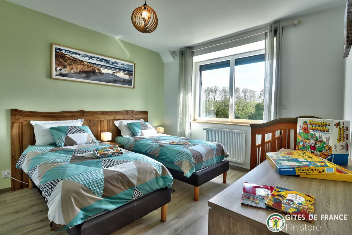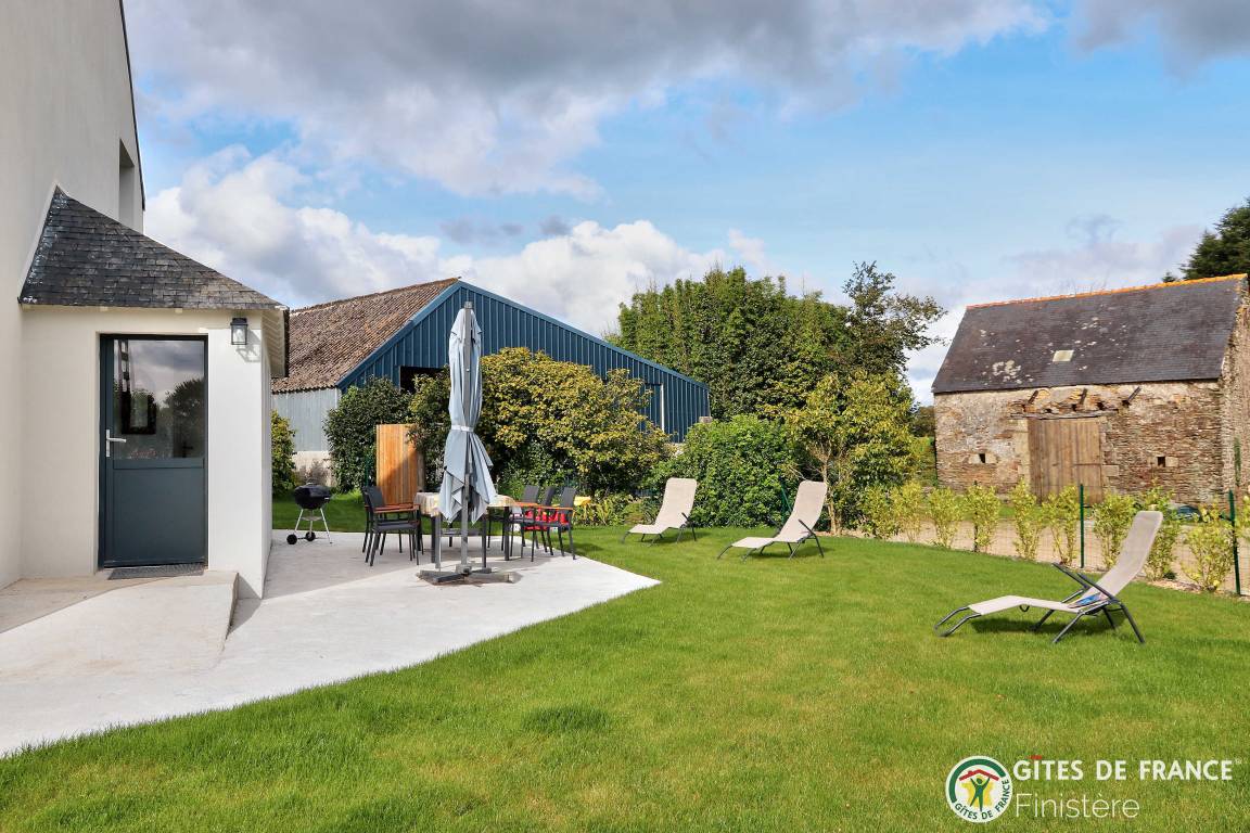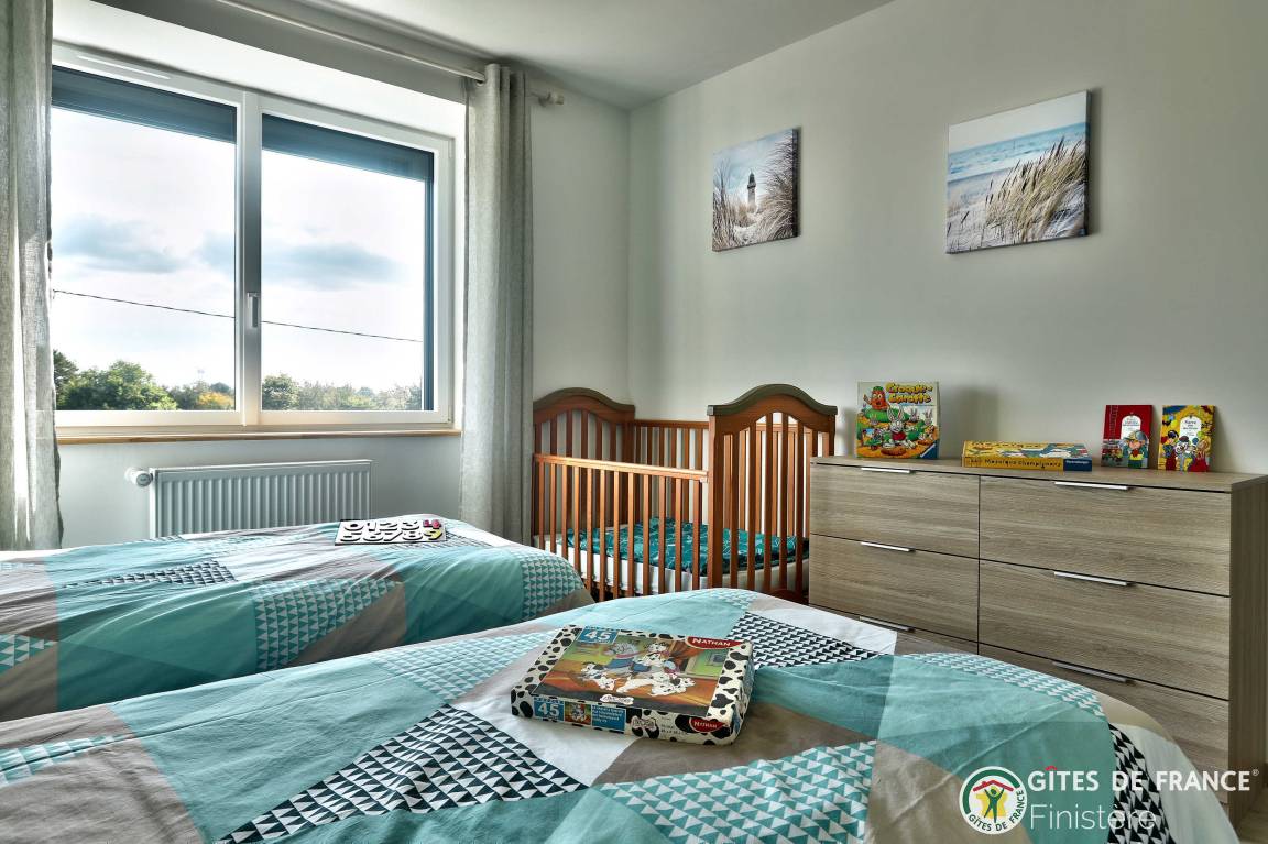 „Nous avons reçu un super accueil de la part de la propriétaire, une bouteille de cidre, de jus de pommes et un gros paquet de gâteaux bretons. Le gîte est TOUT neuf, les travaux datent de 2024, nous nous y sommes très vite sentis à l'aise, en vacances, aucune déception dans le matériel disponible pour une famille de 5 personnes avec des jeunes enfants. Il dispose d'un vrai sèche cheveux par exemple, pas un tout petit sans puissance. Le jardin clos nous a sécurisé pour nos 3 enfants en bas âges, avec même un tracteur à pédales pour chacun! Nous avons pu assister à la traite des vaches de la ferme régulièrement voire même pu faire faire un tour de tracteur pour les enfants. Enfin, le gîte est idéalement situé entre terre, Quimper, 15 minutes et mer, Douarnenez, 25 minutes. Avec ce gîte, nous garderons un merveilleux souvenir de ces vacances 2025 en Bretagne.“