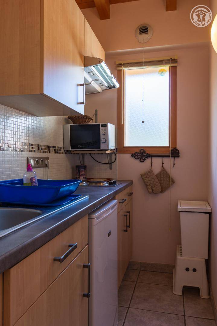 „Nous avons passé une bonne semaine de vacances dans cet appartement, bien conçu et agréable. L'appartement est chaleureux et mignon (à l'étage sous le toit avec charpente apparente), tout était propre et en parfait état. Accès et parking facile également, à recommander.“