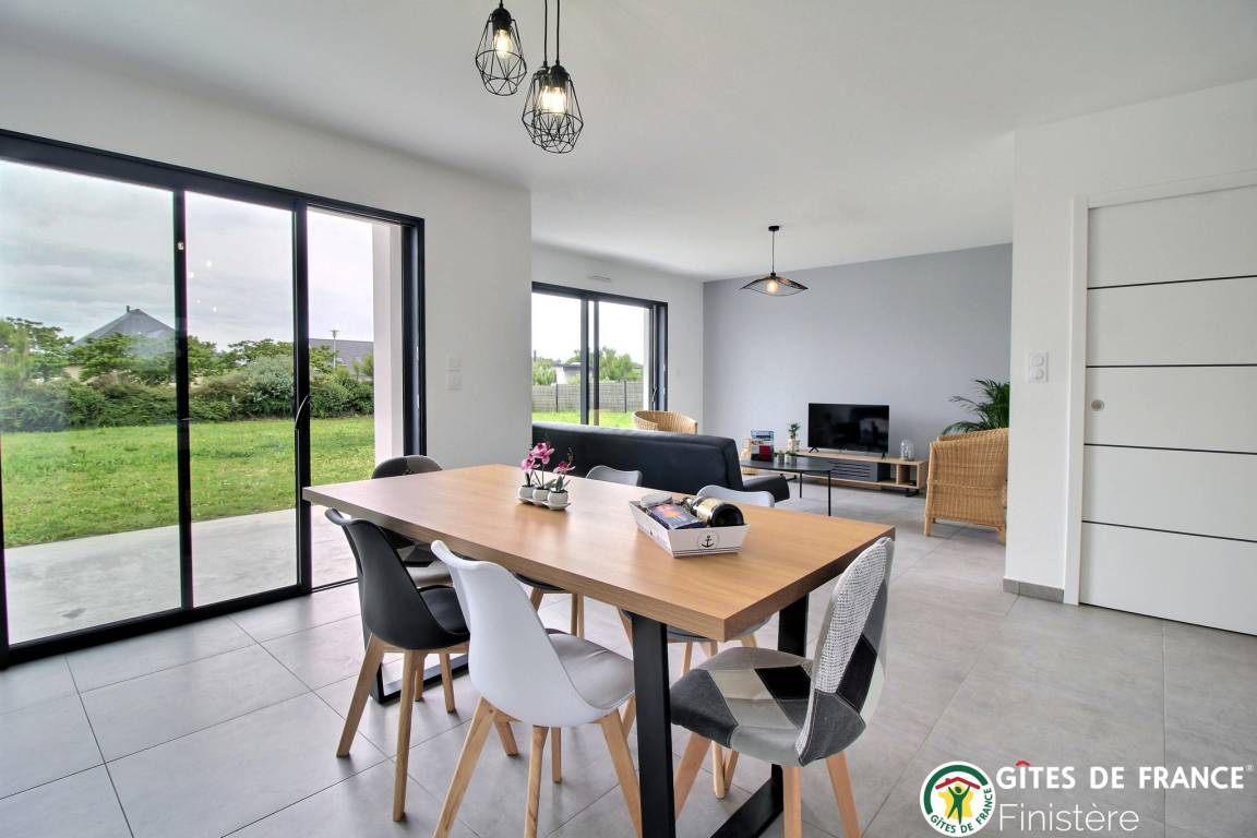 „Très bon accueil et beaucoup d'attentions de la part des propriétaires. Le gîte est moderne, spacieux, confortable, très bien équipé et très propre. Grand jardin, vélos et kayak de mer à disposition. Maison très calme tout en étant à proximité de la mer et des commerces.“
