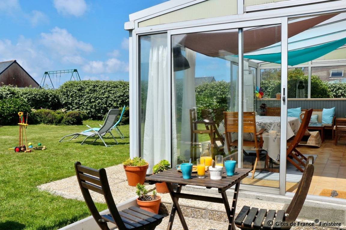 „Superbe maison parfaitement équipée, meublée et décorée avec goût, et située à deux pas de la côte "sauvage". Accueil sympathique et efficace.Gîte calme et propre, spacieux, bien conçu, agréable avec une belle véranda donnant sur un jardin fleuri bien entretenu.Tout est fait pour garantir un séjour serein et heureux.La literie est excellente. Un grand merci pour l accueil chaleureux et les indications de promenades, randonnées, restaurants à proximité. Nous avons découvert la côte sauvage d Iroise et ses nombreux chemins de randonnée avec beaucoup d intérêt grâce à nos hôtes. Nous reviendrons et recommandons ce gîte.“