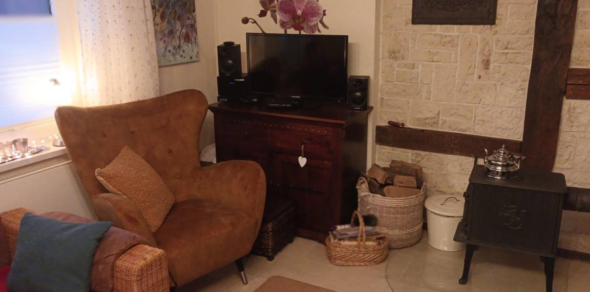 es gibt einen skandinavischen Holzofen, WLAN ist vorhanden.