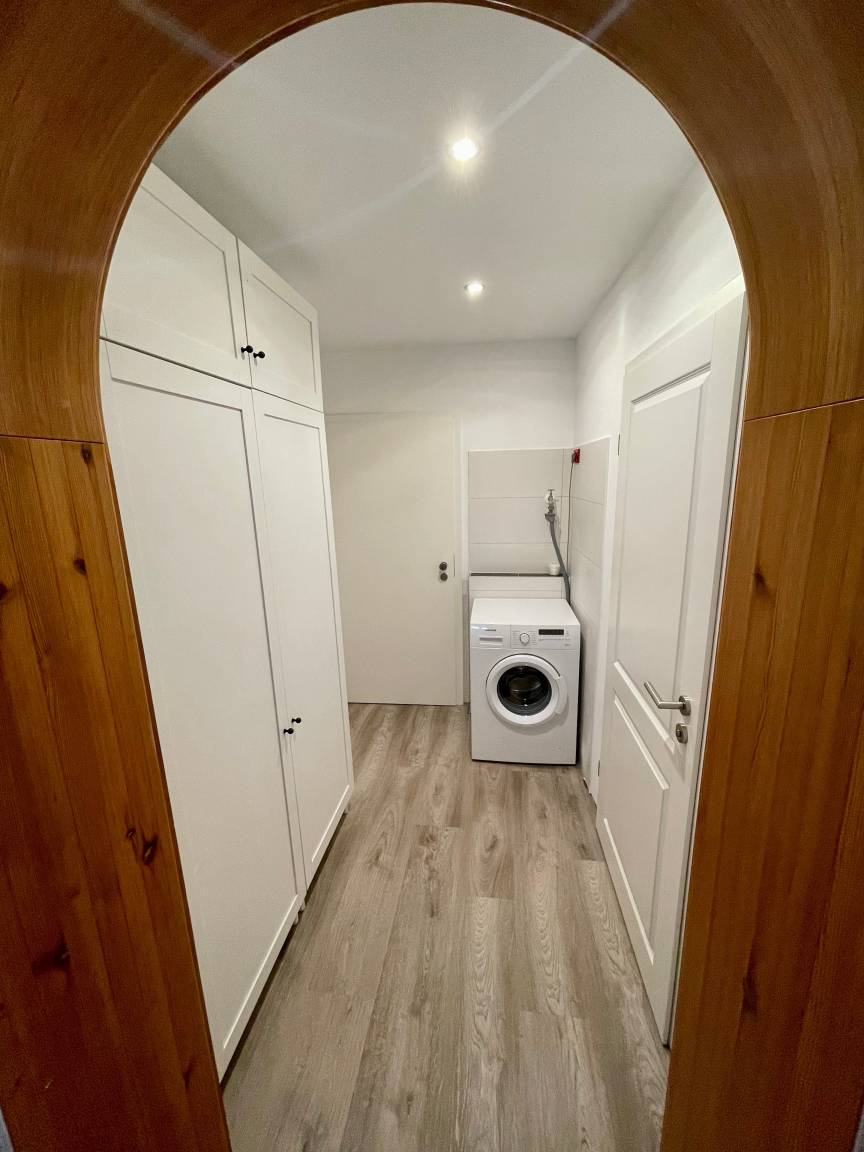 Die Wohnung ist komplett ausgestattet und verfügt über eine Küche mit allen notwendigen Geräten und Utensilien, ein gemütliches Wohnzimmer mit einem Flachbild-TV und Kamin sowie zwei Schlafzimmern mit komfortablen Betten. Das moderne Badezimmer besitzt neben Waschbecken, Toilette und Dusche auch eine Waschmaschine.