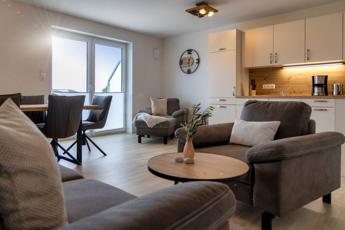 Unser außergewöhnliches Feriendomizil, 2024 aus einem ehemaligen landwirtschaftlichen Gebäude erschaffen, bietet Ihnen modernen Wohnkomfort, ohne den traditionellen Charme zu verlieren. Mit viel Liebe zum Detail wurden die alten Balken aufwendig restauriert und erhalten, um eine einzigartige Atmosphäre zu schaffen. Die Wohnungen sind hell, modern und luxuriös eingerichtet.