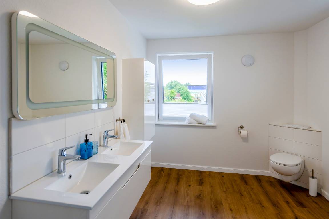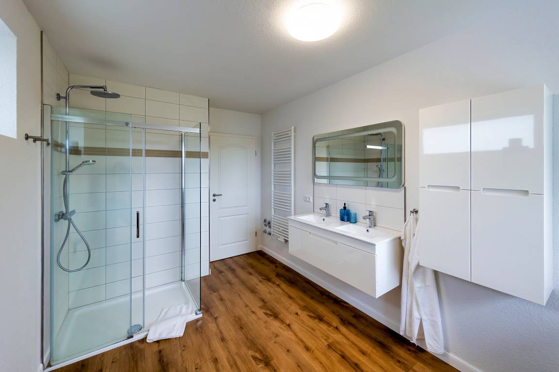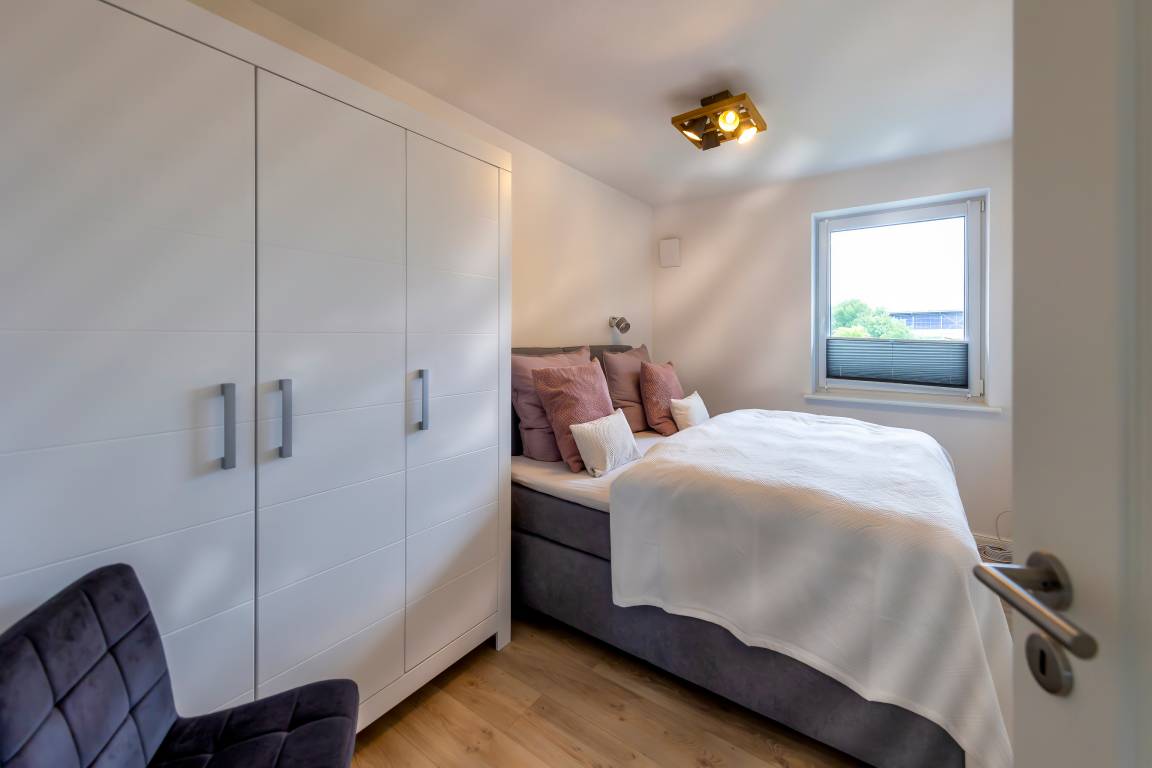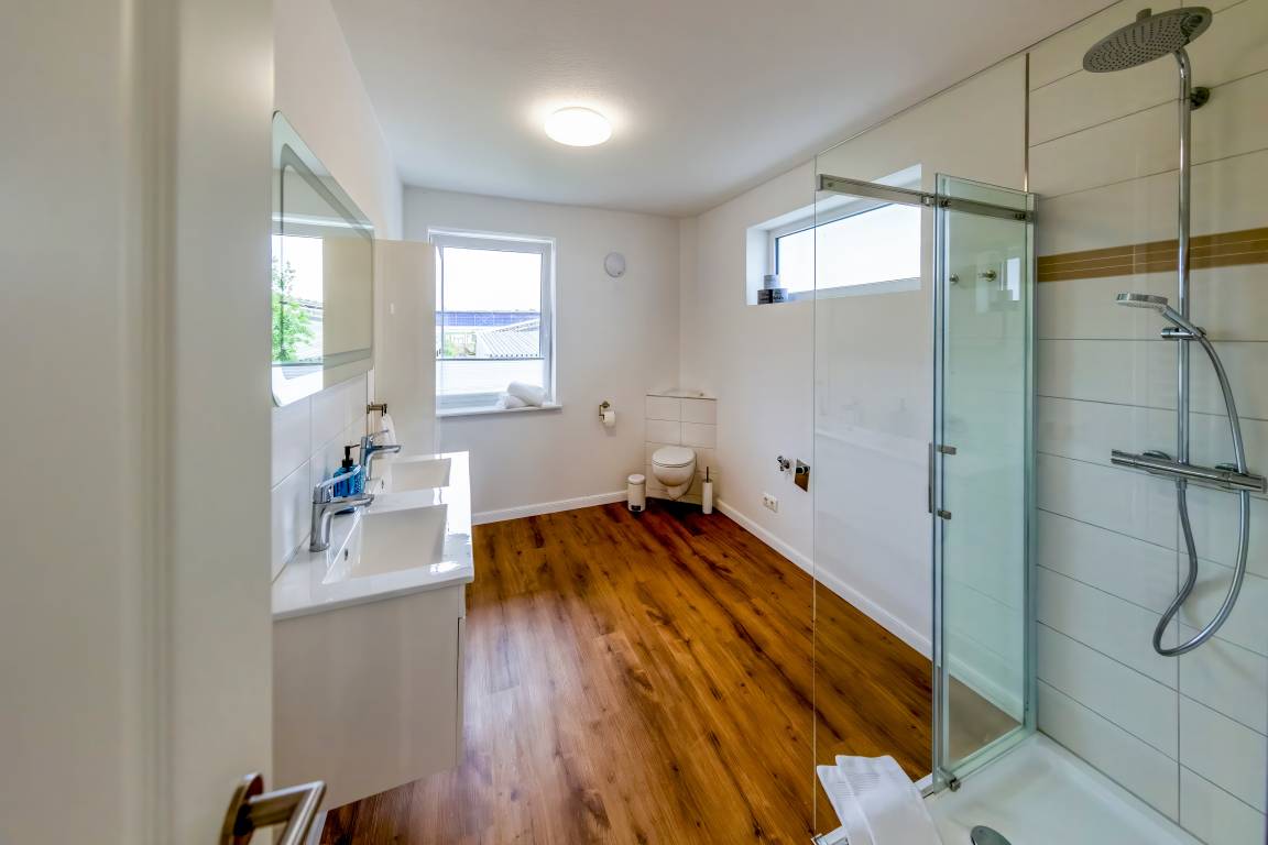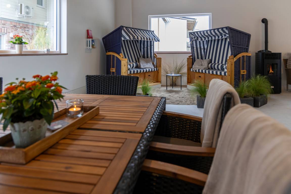 Eine Fußbodenheizung sorgt im ganzen Haus für wohlige Wärme und eine Klimaanlage rundet das ganze ab. In den stilvollen Bädern finden Sie bodengleiche Duschen, die nach einem erfrischenden Tag an der Nordsee zum Aufwärmen einladen. Genießen Sie ein Glas Wein bei Kerzenschein und entspannen Sie anschließend im bequemen Boxspringbett, vielleicht mit einem Film auf dem großen Flachbildfernseher.