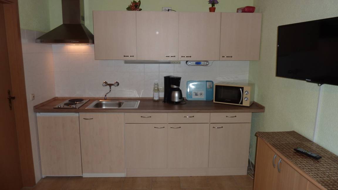 Richtige Urlaubsstimmung kommt auf der schönen Terrasse der Ferienwohnung auf. Die toll ausgestattete Küche bietet nicht nur einen Kühlschrank und Ofen, sondern auch eine Mikrowelle und Kaffeemaschine!