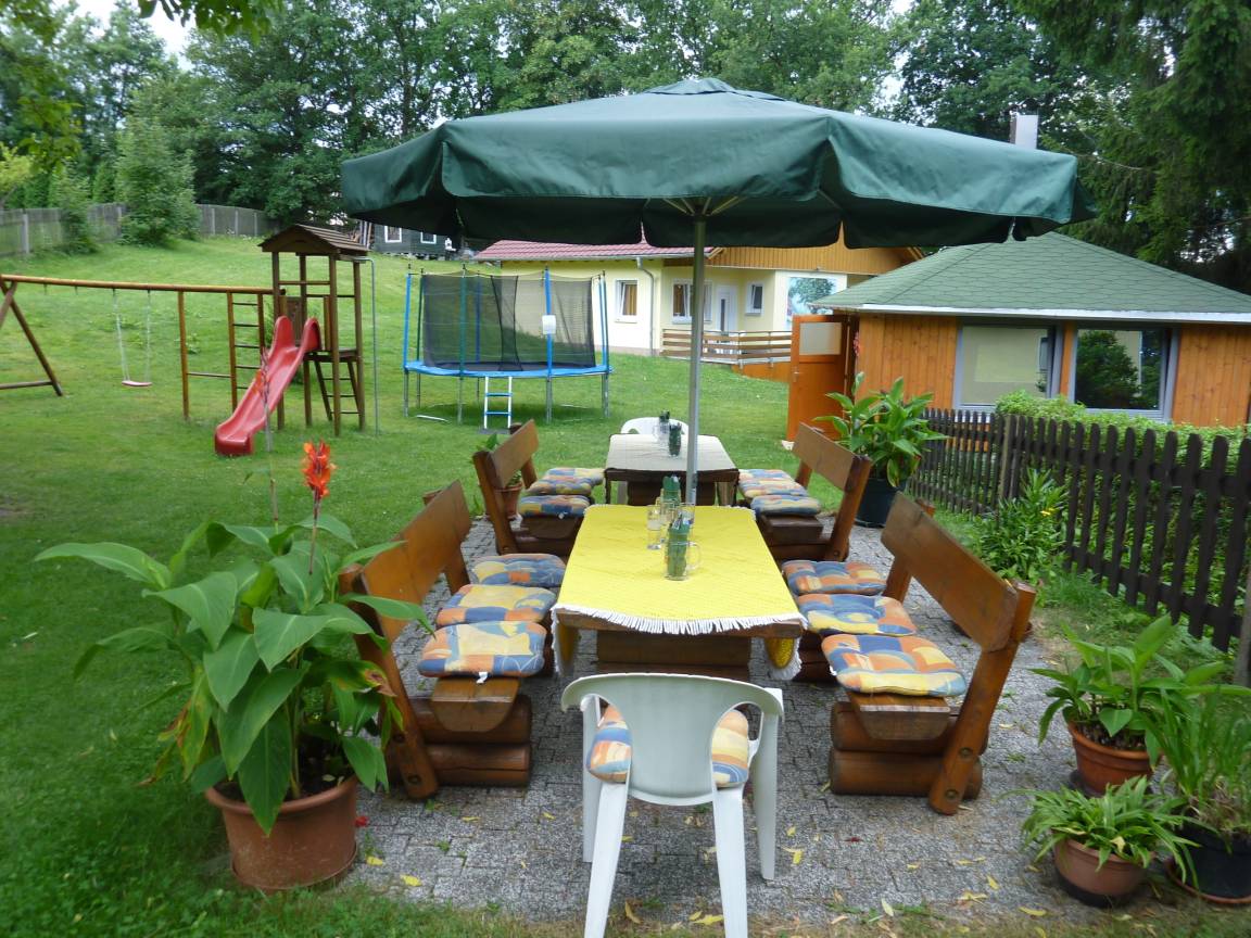 Bestandteil des Ferienhof „Zum Kammergut „ ist das mehrfach mit „ 3 Sterne „ durch den DTV ausgezeichnet „ Ferienhaus „ mit zwei 50 qm großen Appartements für 2 bis 4 Personen, je ein Schlafzimmer, separaten, Kinderzimmer, Wohnküche, komplett eingerichtet: Kühlschrank Kaffeemaschine, Toaster, Wasserkocher Mikrobackofen, Geschirr, TV. DU/WC, Wlan, Terrasse und Carport, ein großer Garten mit Liegewiese, Gartenmöbel, Grillpavillon, Tischtennis, Freilandschach und ein eigener Spielplatz für die kleinen Gäste. Parkmöglichkeiten sind unmittelbar am Haus.Gleichzeitig bietet unser waldreiches Thüringer Vogtland rund um das Zeulenrodaer Meer " ( 5 Minuten entfernt ) mit seinen zwei neuen Strandbädern, ideale Möglichkeiten zum Baden, für den Wassersport, für Wanderer, Angler und Spaziergänger, bis hin zum Nordic Walking auf neu angelegten Wanderwegen.