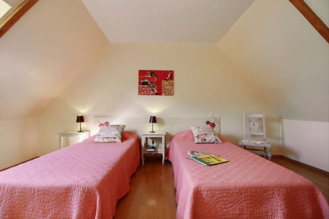Ihr Ferienhaus umfasst im Erdgeschoss: Küche, gemütliches Wohnzimmer , beschichtet mit Hanf, Wohnzimmer, 1 Schlafzimmer (1 Doppelbett 160x200) mit Bad mit Dusche, WC Etage: 2 Schlafzimmer (2 Einzelbetten 90x200 in jedem Schlafzimmer), Badezimmer mit Dusche, WC Privater Garten von 100 m², Terrasse, privater Parkplatz.