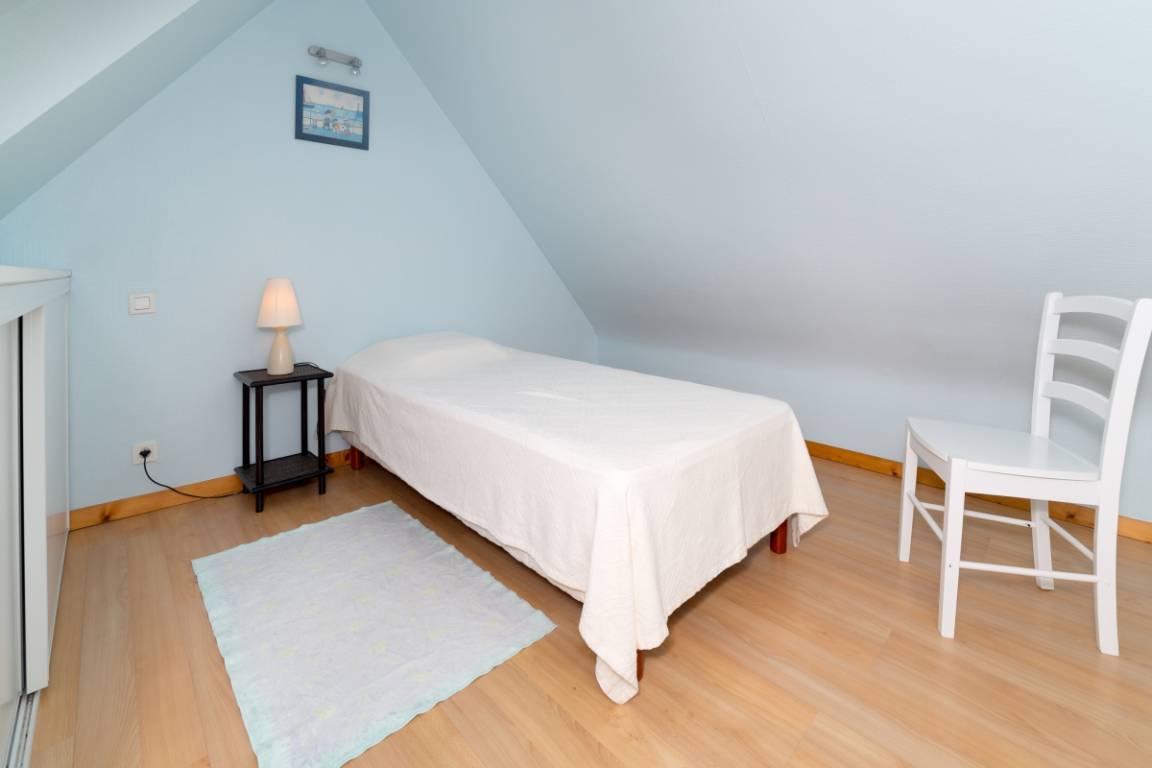 Ihre Ferienwohnung umfasst im Erdgeschoss: Wohnzimmer mit Einbauküche, Badezimmer mit Dusche, WC. Etage: 1 Schlafzimmer (1 Doppelbett) und 1 Schlafzimmer (1 Einzelbett). Hof (100 m²) und Grundstück (100 m²). Telefon (eingeschränkter Service).