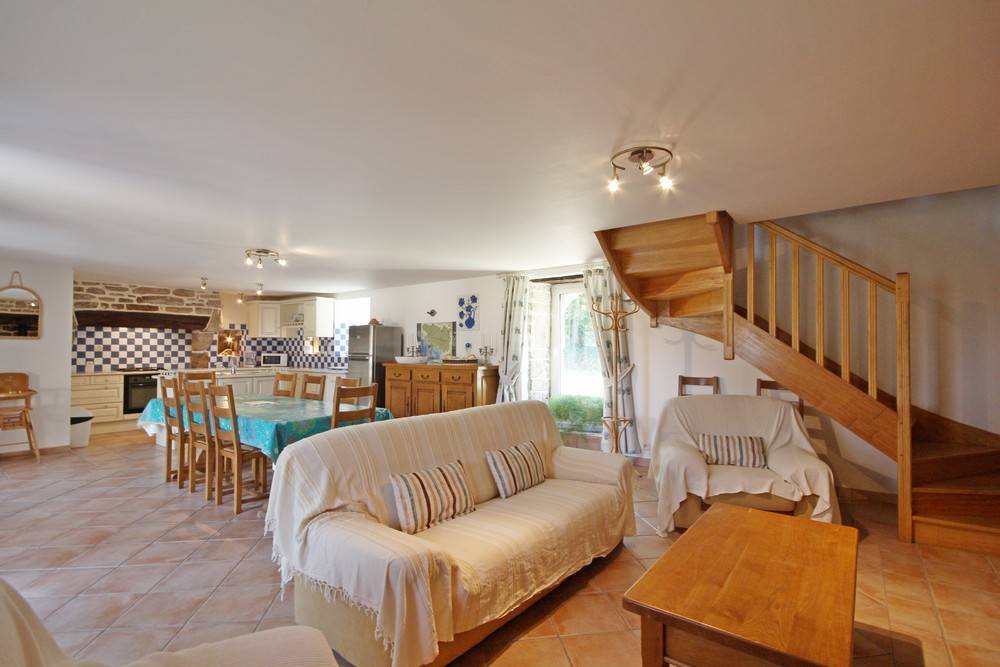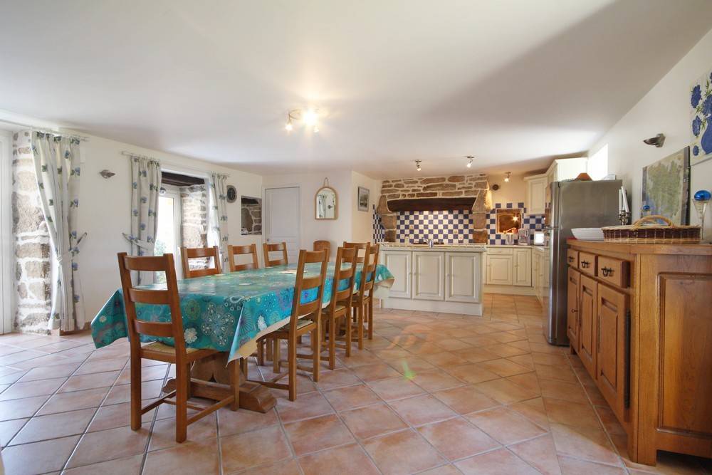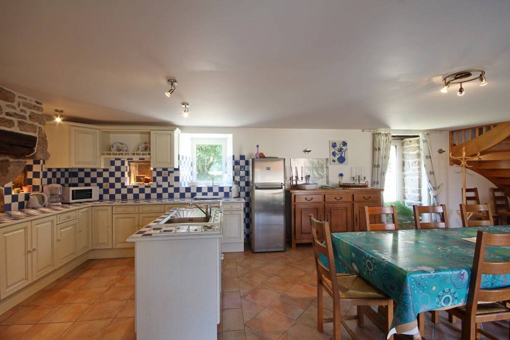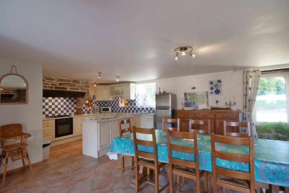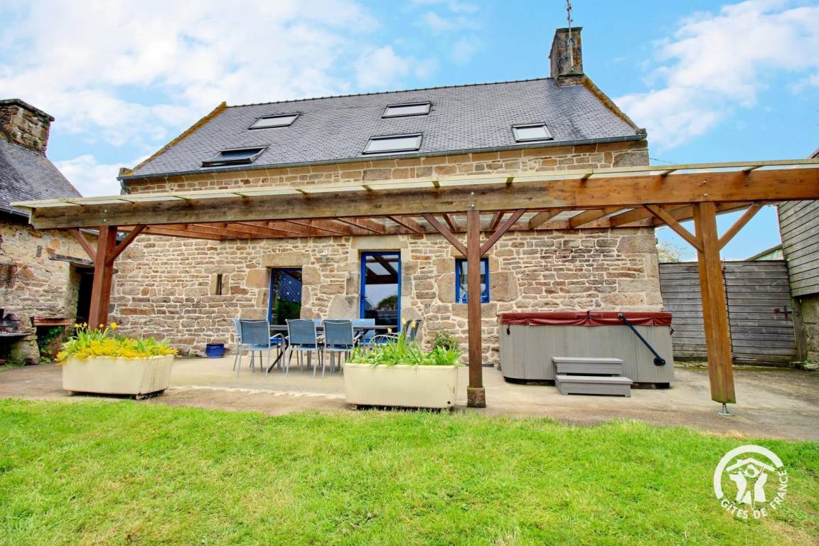 Ferienhaus in zentraler Lage in der Nähe des Sees Lac de Guerlédan, viele Wandermöglichkeiten, Radwege. Schön renoviertes neubretonisches Haus, moderne funktionelle Elemente und traditionelle Elemente. Die Vermieter als ehemalige Landwirte bieten ihre Produkte für Kostproben an.Im EG des Ferienhauses: Wohnbereich mit Essbereich, Küche und Wohnzimmer mit Kamin, WC. Im 1. Stock: 3 Schlafzimmer (2 Doppelbetten, 2 Einzelbetten, 1 Kinderbett), Badezimmer, WC. 2. Stock: ein 4. Zimmer mit 2 Einzelbetten, WC und ein Bad mit Dusche. Das 5. Schlafzimmer ist von draußen zugänglich (1 Doppelbett), Bad mit Dusche und WC. Zentral-Erdwärmeheizung, Waschküche. Im Freien: Garten 200 qm mit überdachter Terrasse, Gartenmöbel und Grill. Überdachter Spielsaal 40 qm. Sahnehäubchen: Whirlpool mit 5/6 Plätzen... Wunderbare Entspannung nach Ausflügen! Haustiere: Hundezwinger kostenfrei. Auf Anfrage: Haustücher (Tischdecke, Geschirrtücher, Servietten): 8 €/Aufenthalt. In der Nähe des Ferienhauses 56G999.