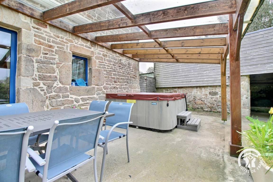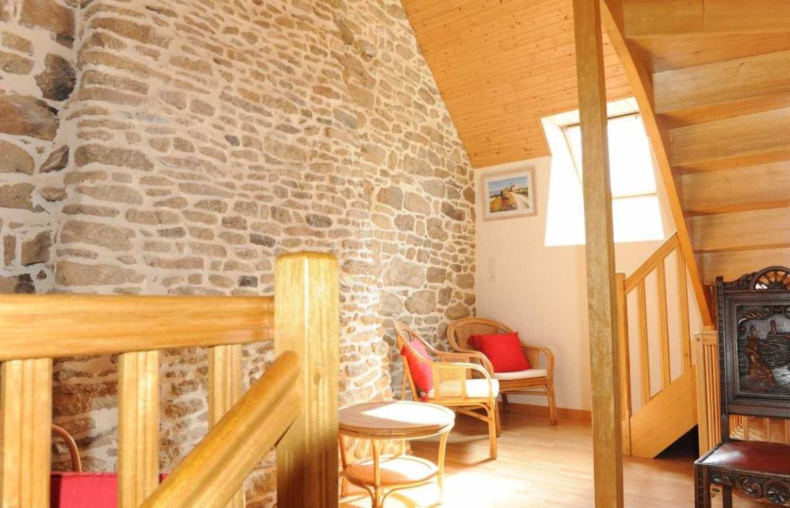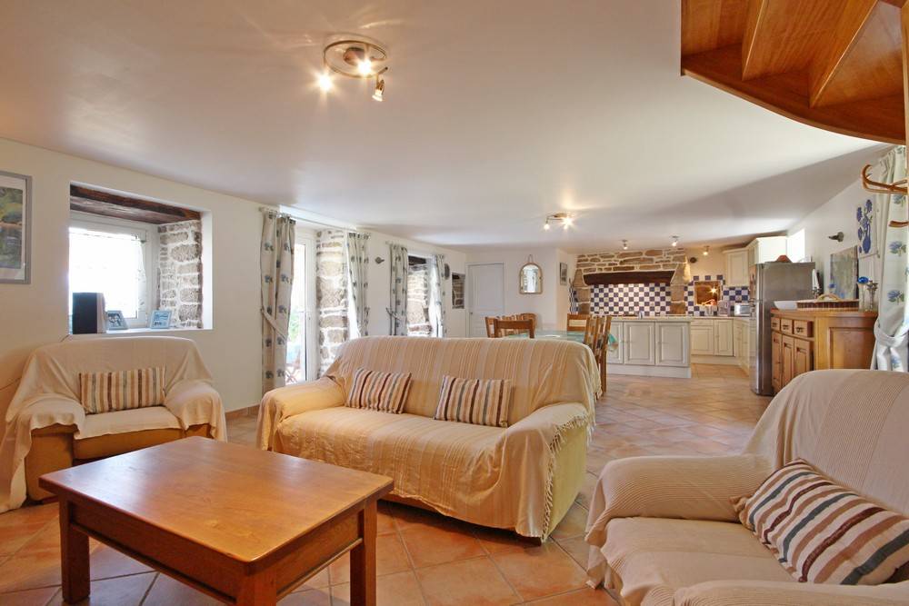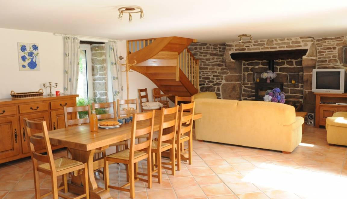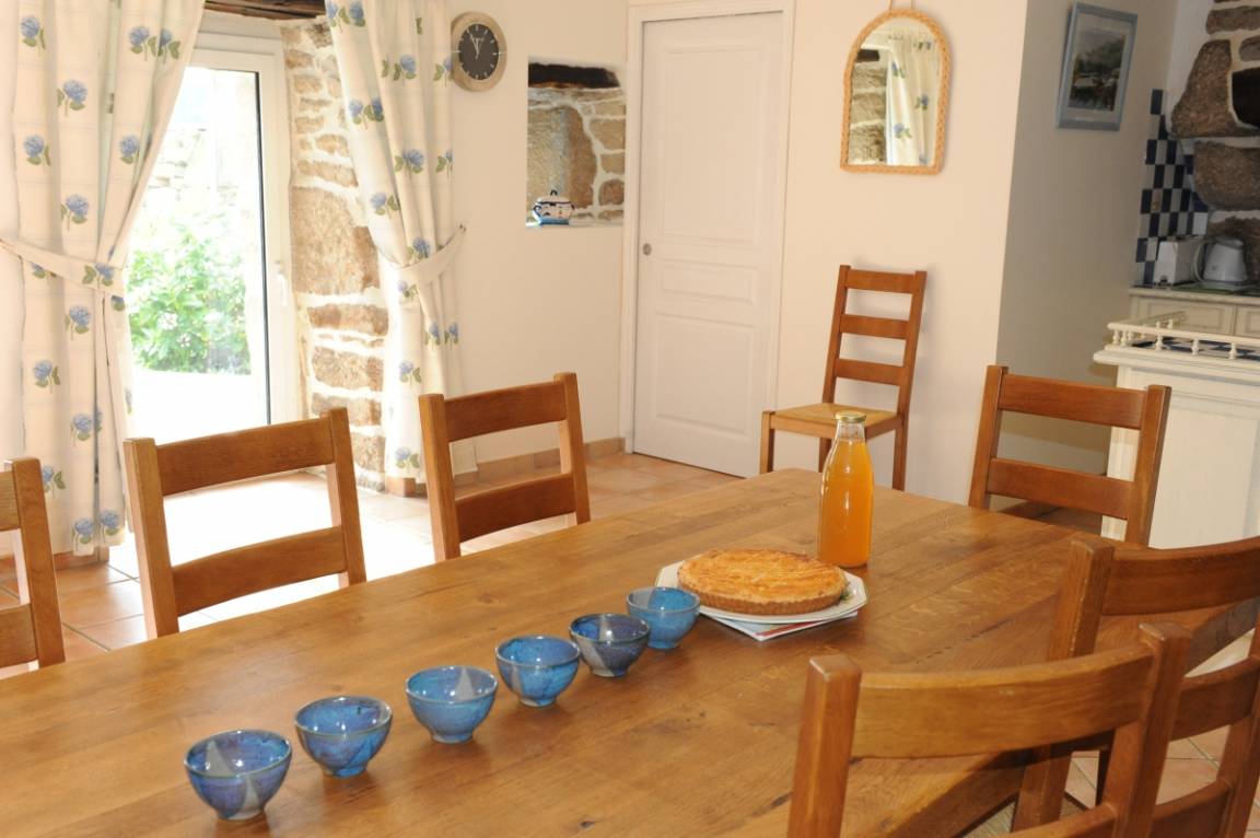 Ferienhaus in zentraler Lage in der Nähe des Sees Lac de Guerlédan, viele Wandermöglichkeiten, Radwege. Schön renoviertes neubretonisches Haus, moderne funktionelle Elemente und traditionelle Elemente. Die Vermieter als ehemalige Landwirte bieten ihre Produkte für Kostproben an.Im EG des Ferienhauses: Wohnbereich mit Essbereich, Küche und Wohnzimmer mit Kamin, WC. Im 1. Stock: 3 Schlafzimmer (2 Doppelbetten, 2 Einzelbetten, 1 Kinderbett), Badezimmer, WC. 2. Stock: ein 4. Zimmer mit 2 Einzelbetten, WC und ein Bad mit Dusche. Das 5. Schlafzimmer ist von draußen zugänglich (1 Doppelbett), Bad mit Dusche und WC. Zentral-Erdwärmeheizung, Waschküche. Im Freien: Garten 200 qm mit überdachter Terrasse, Gartenmöbel und Grill. Überdachter Spielsaal 40 qm. Sahnehäubchen: Whirlpool mit 5/6 Plätzen... Wunderbare Entspannung nach Ausflügen! Haustiere: Hundezwinger kostenfrei. Auf Anfrage: Haustücher (Tischdecke, Geschirrtücher, Servietten): 8 €/Aufenthalt. In der Nähe des Ferienhauses 56G999.