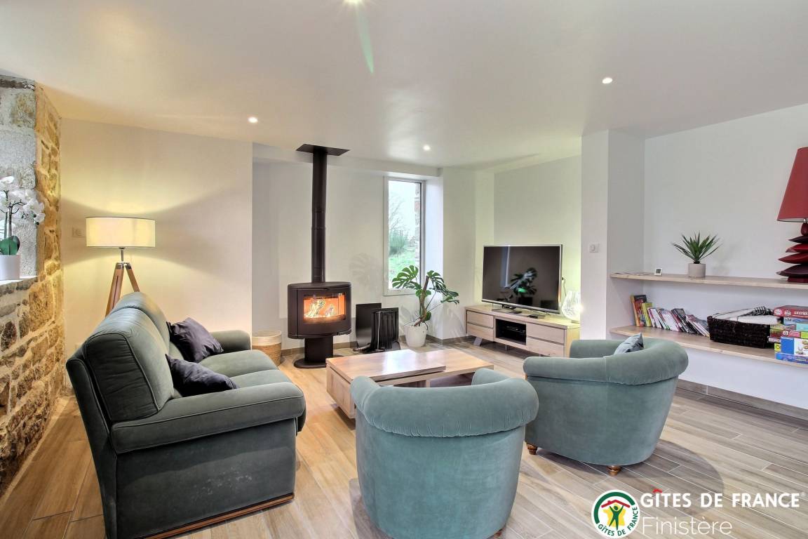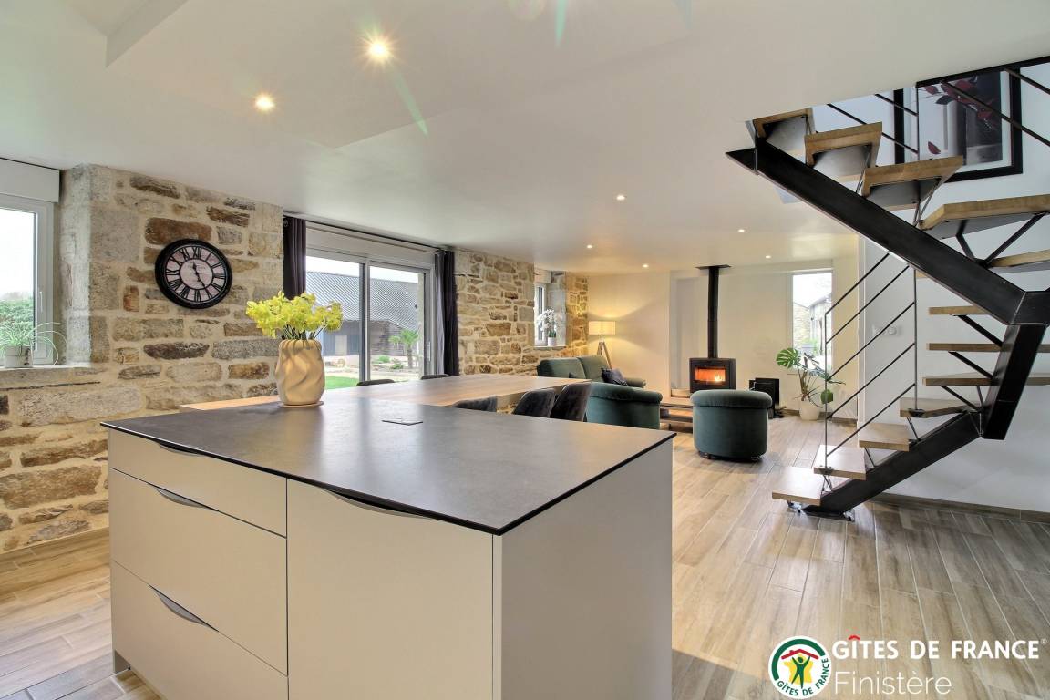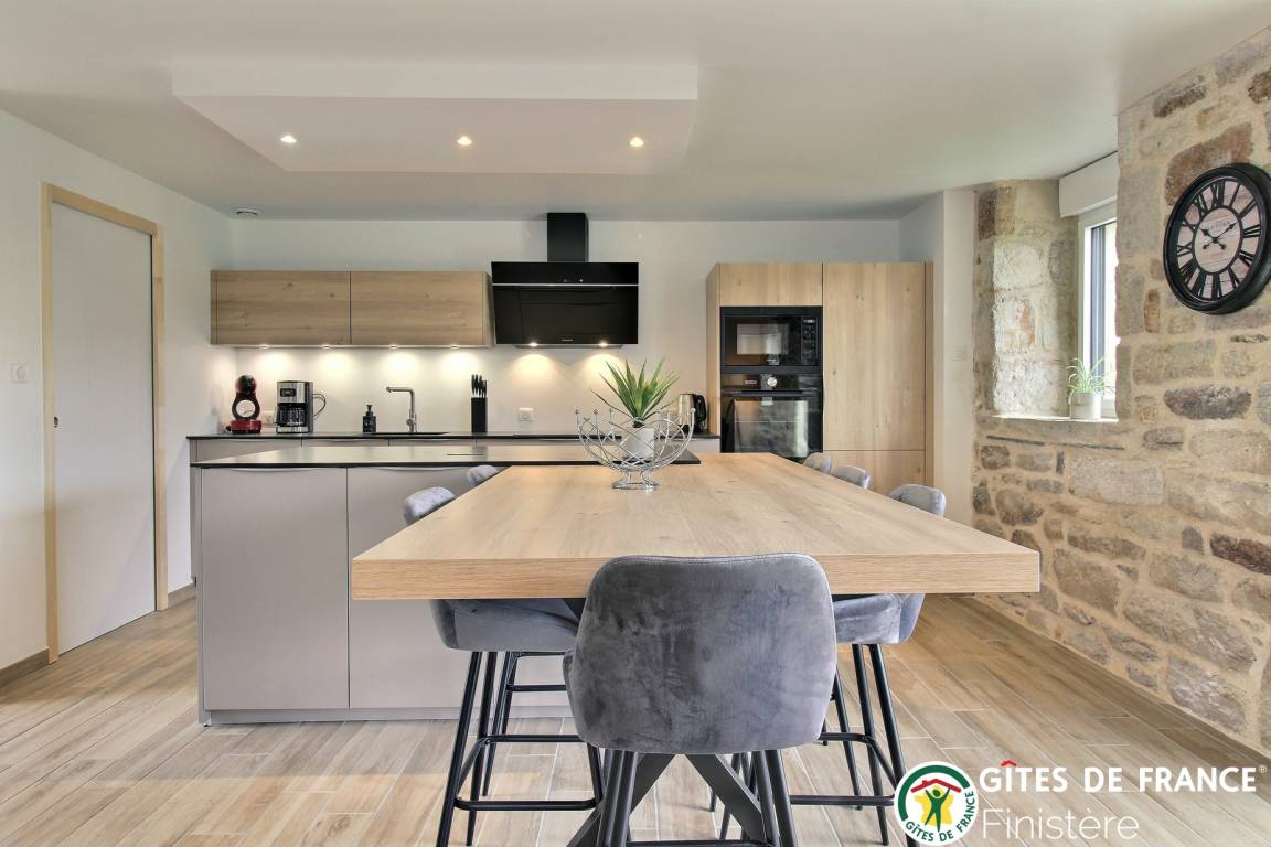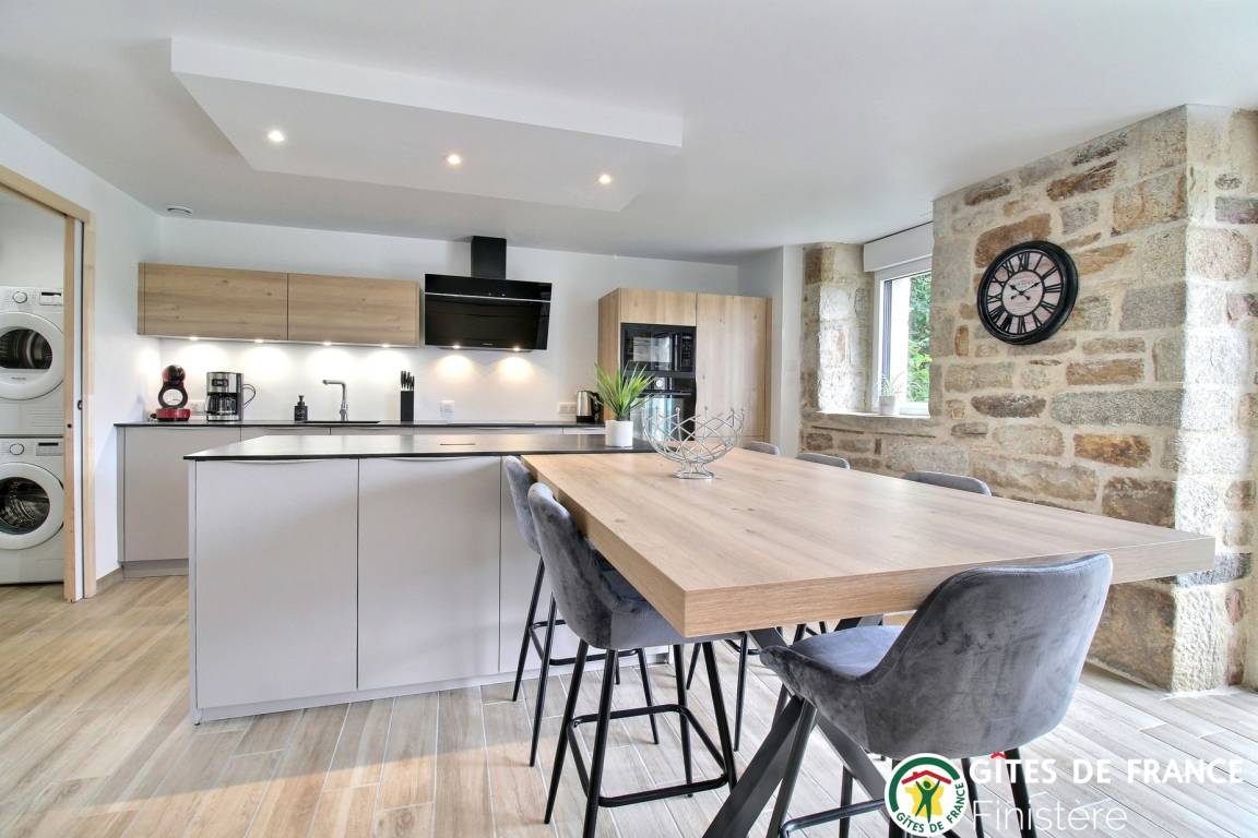 „Maison neuve avec des équipements de grande qualité, parfaitement équipée avec tout le nécessaire pour le séjour, et même davantage. Piscine chauffée accessible toute la journée. Endroit très calme et reposant. À notre arrivée, le propriétaire nous a offert des crêpes et une bouteille de cidre, une délicate attention. Nous recommandons vivement ce gîte. Merci !“