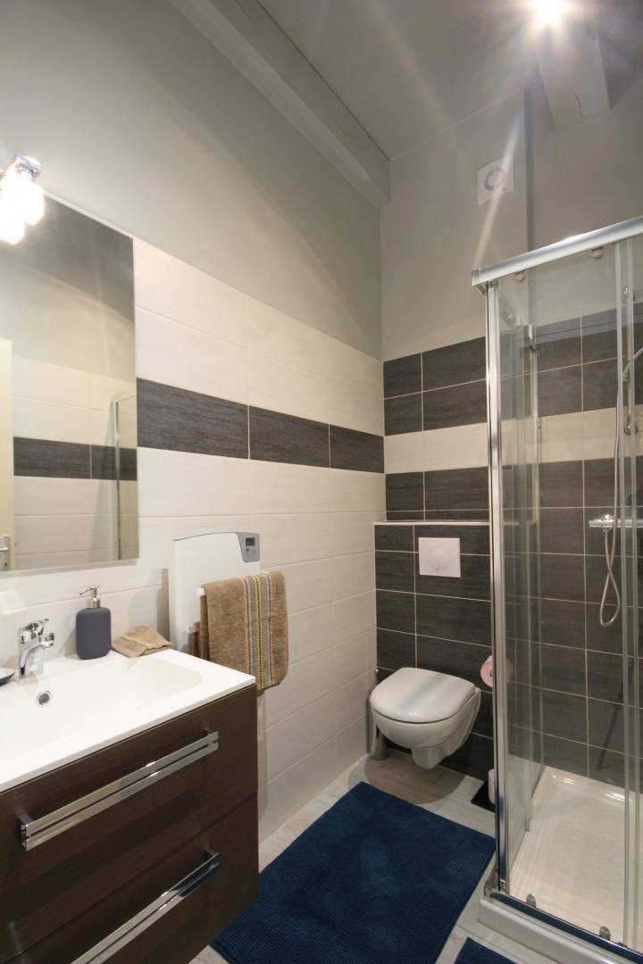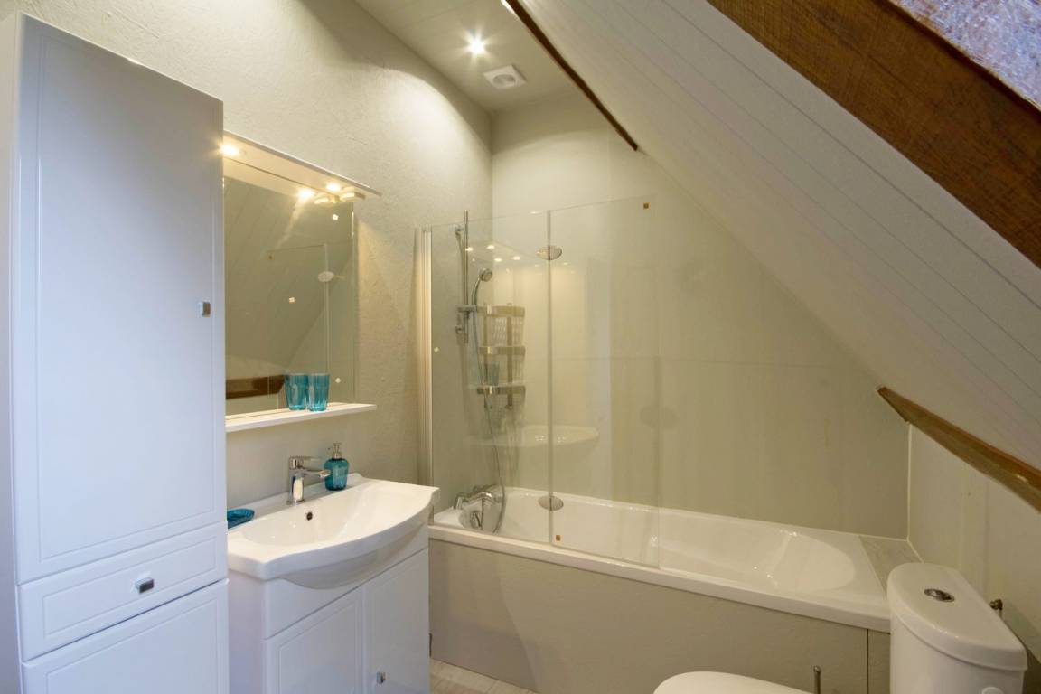 - Im 1. Stock: 3 Schlafzimmer (ein Schlafzimmer mit 1 Bett 160 cm, ein Schlafzimmer mit 2 Betten 90 cm und ein Schlafzimmer mit 1 Bett 90 cm), ein Badezimmer mit WC.