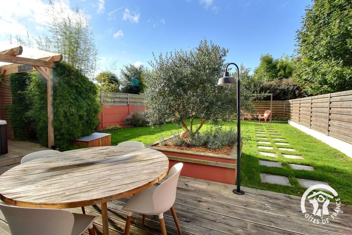Große 43 m² große Terrasse mit Ruhebereich: Whirlpool ganzjährig nutzbar (mit Warmwasserdusche), wunderschön angelegter Garten (140 m²).