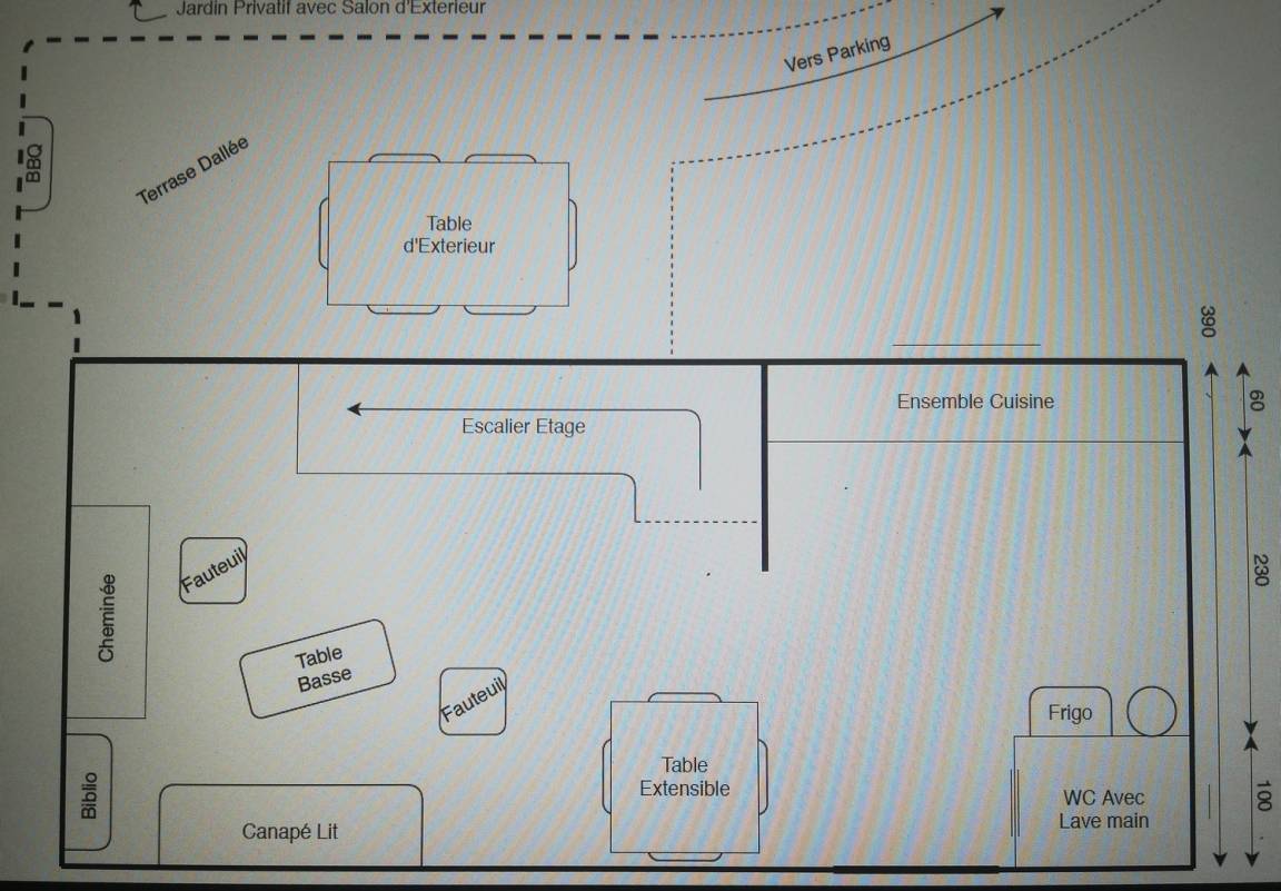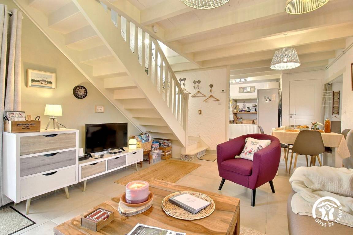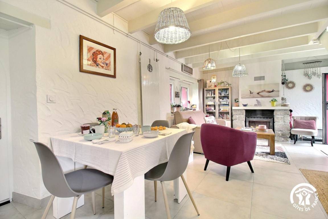 Draußen werden Sie die Terrasse von 18 m² ohne vis-à-vis und nach Westen zu schätzen wissen, ideal zum Sonnenbaden und für Ihre Mahlzeiten. Privater Garten von 500 m² nicht eingezäunt und privater Parkplatz am Rand des Gartens. Das Ferienhaus befindet sich in der Nähe des Hauses der Eigentümer, verfügt jedoch über eine private Zufahrt. Sie können das Anwesen (gemeinsam mit den Eigentümern) genießen. Facebook-Seite: