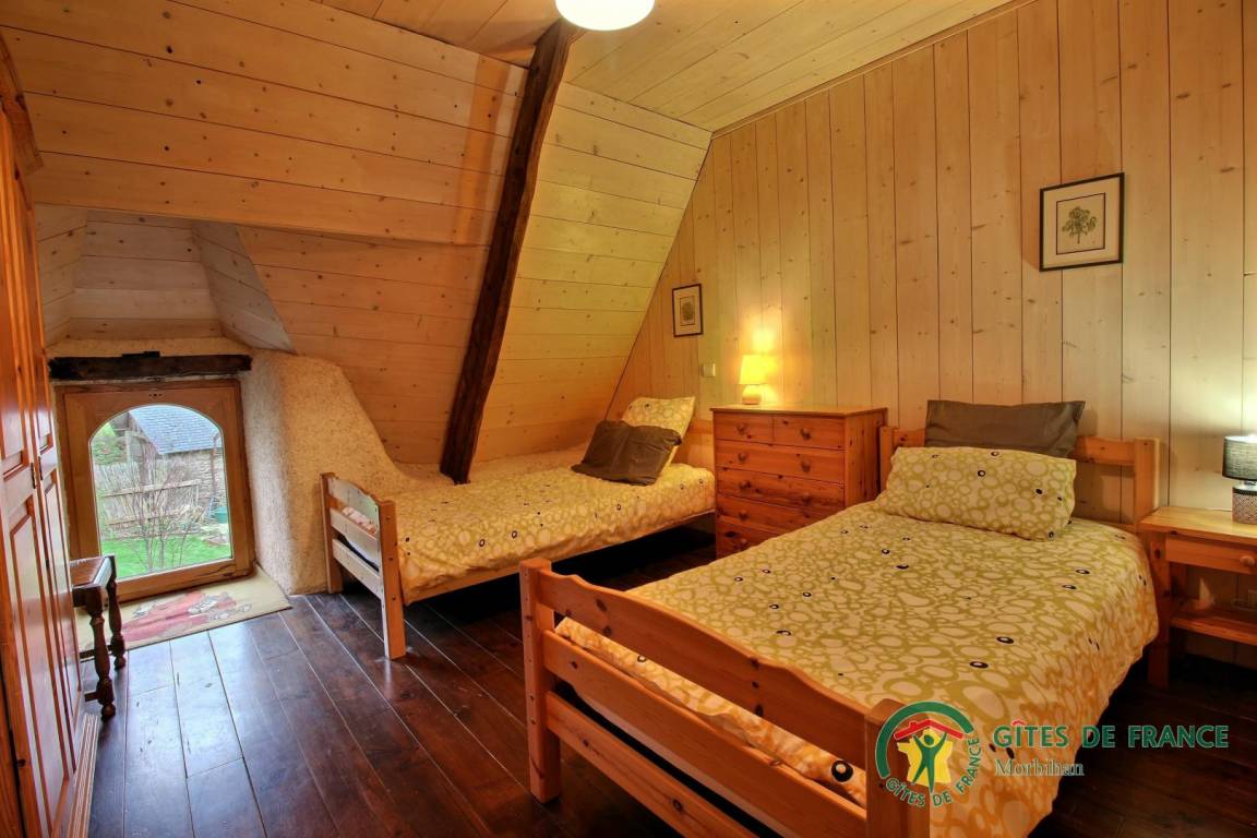 Im 1. Stock: 3 Schlafzimmer (1 Schlafzimmer mit 1 140 cm breitem Bett, ein Einzelschlafzimmer mit 1 120 cm breitem Bett, ein Schlafzimmer mit 2 90 cm breiten Betten, 1 Babybett), ein Duschraum und eine Toilette.