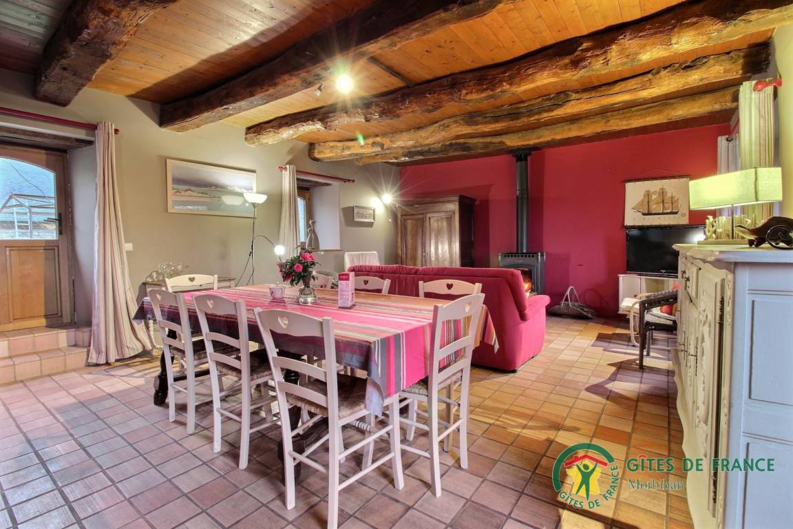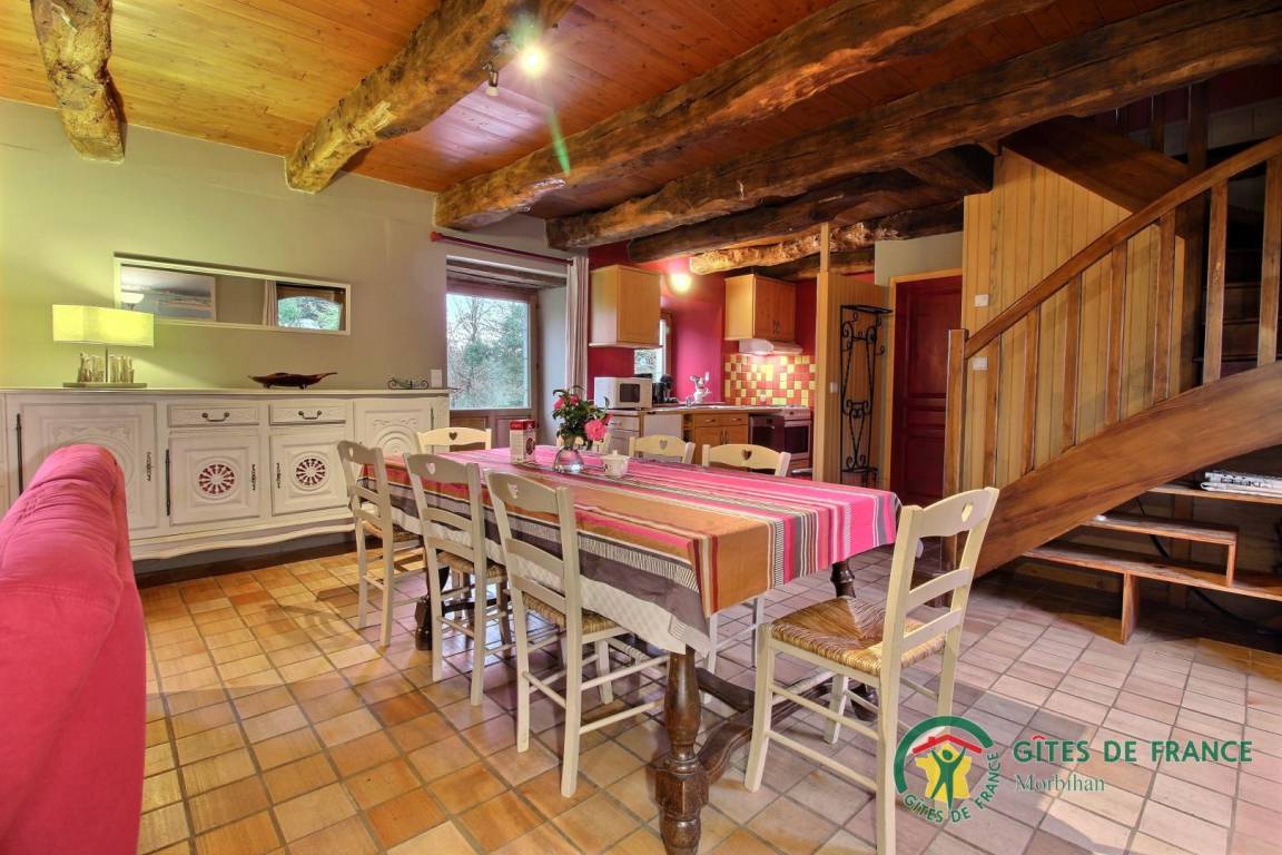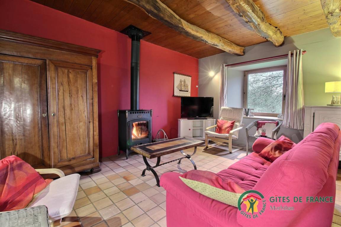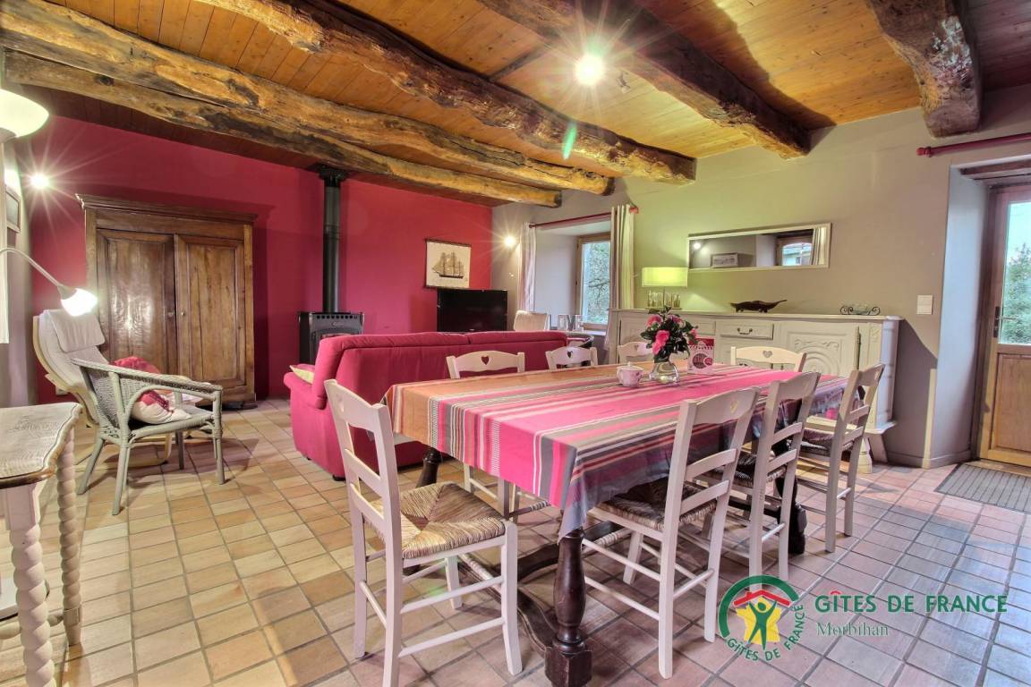 Das Ferienhaus liegt in einer Gebäudegruppe auf einem bewaldeten Grundstück, das an einen Fluss grenzt. In der Nähe der Ria d'Etel (Meeresarm) finden Sie die Ruhe der Landschaft in einer warmen Inneneinrichtung: Holzofen, Balken und Terrakotta. Ökologischer Gemüseanbau.