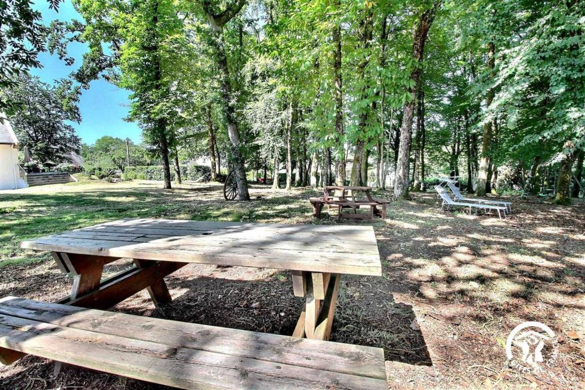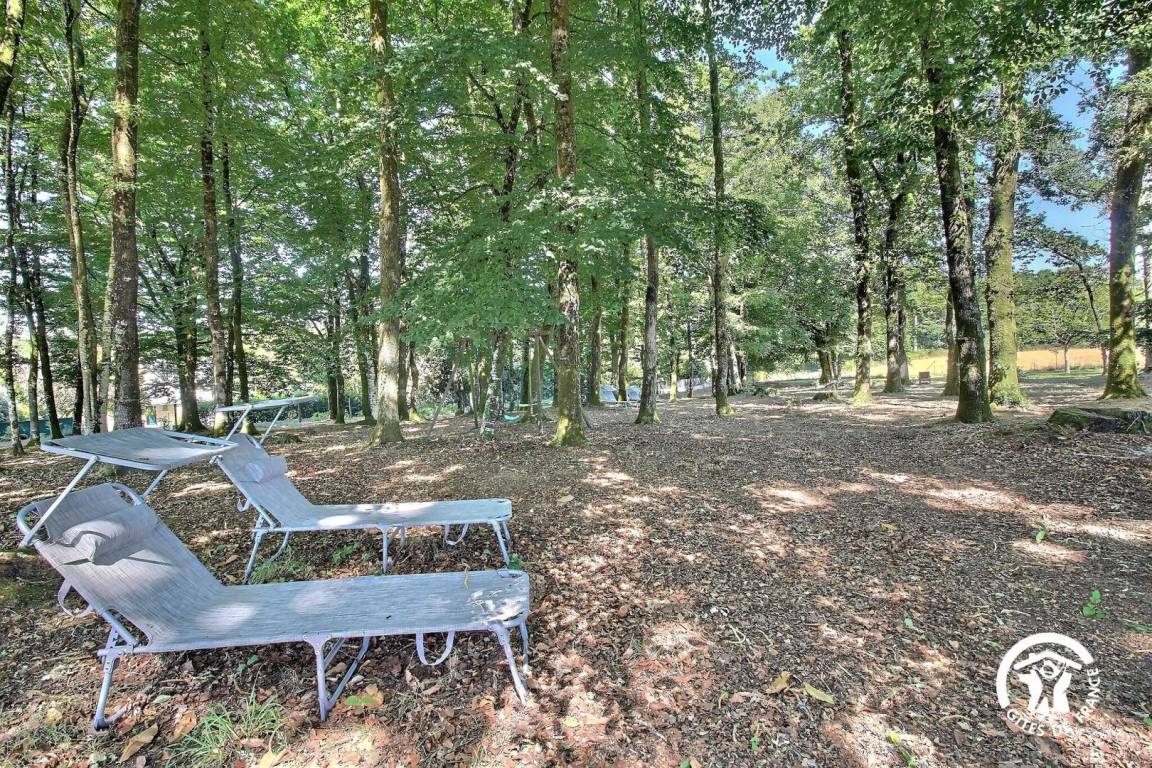 Großer Garten mit Bäumen, Gartenmöbeln, Grill oder Plancha und Sonnenliegen