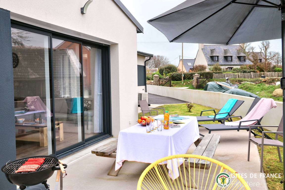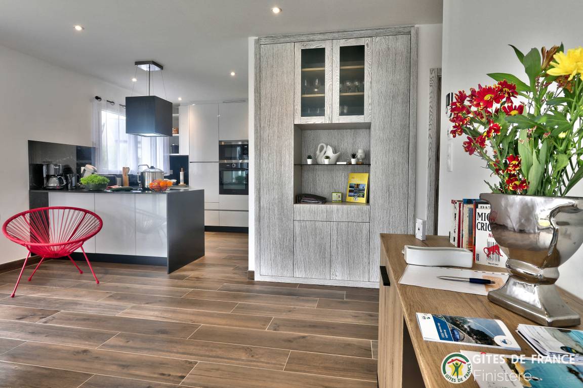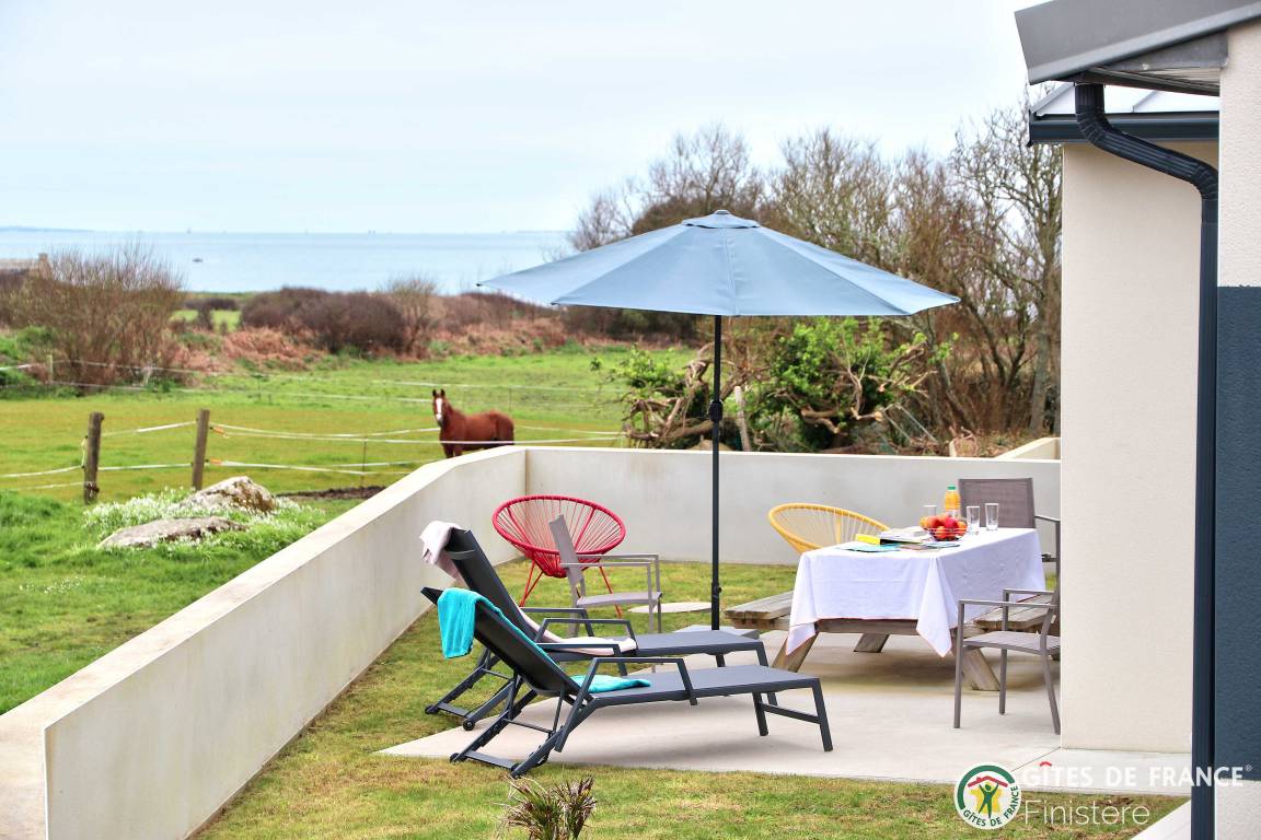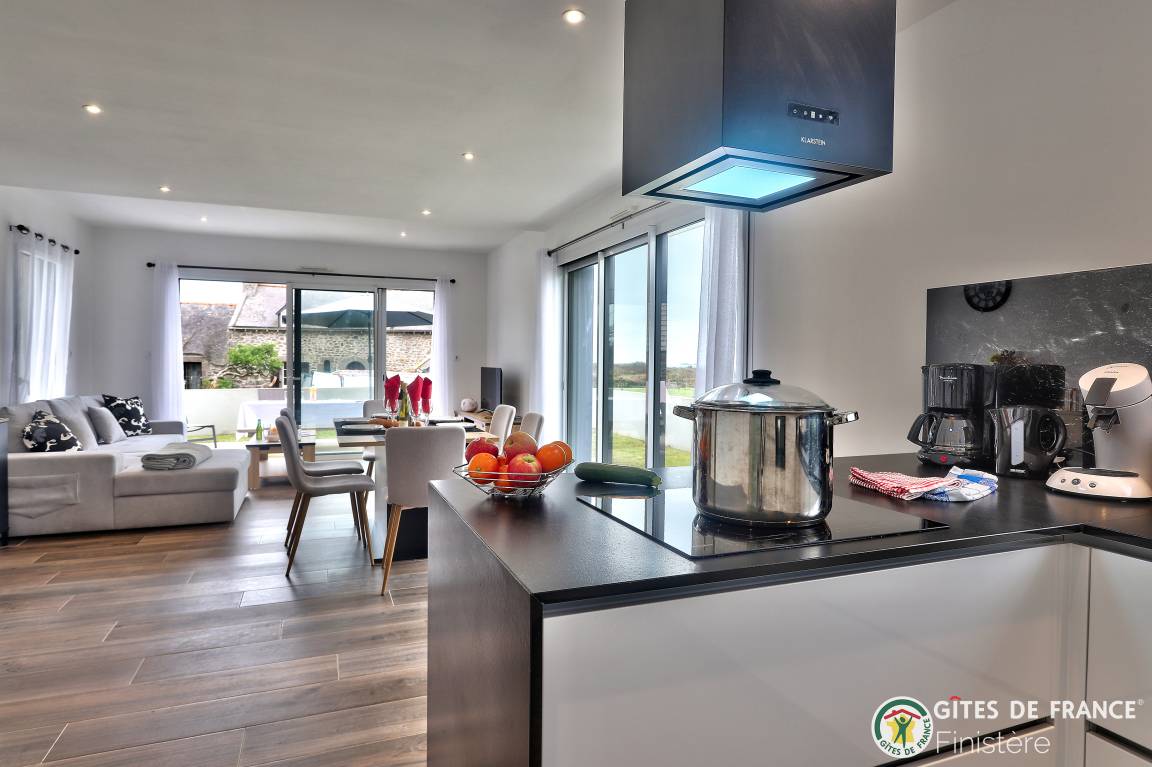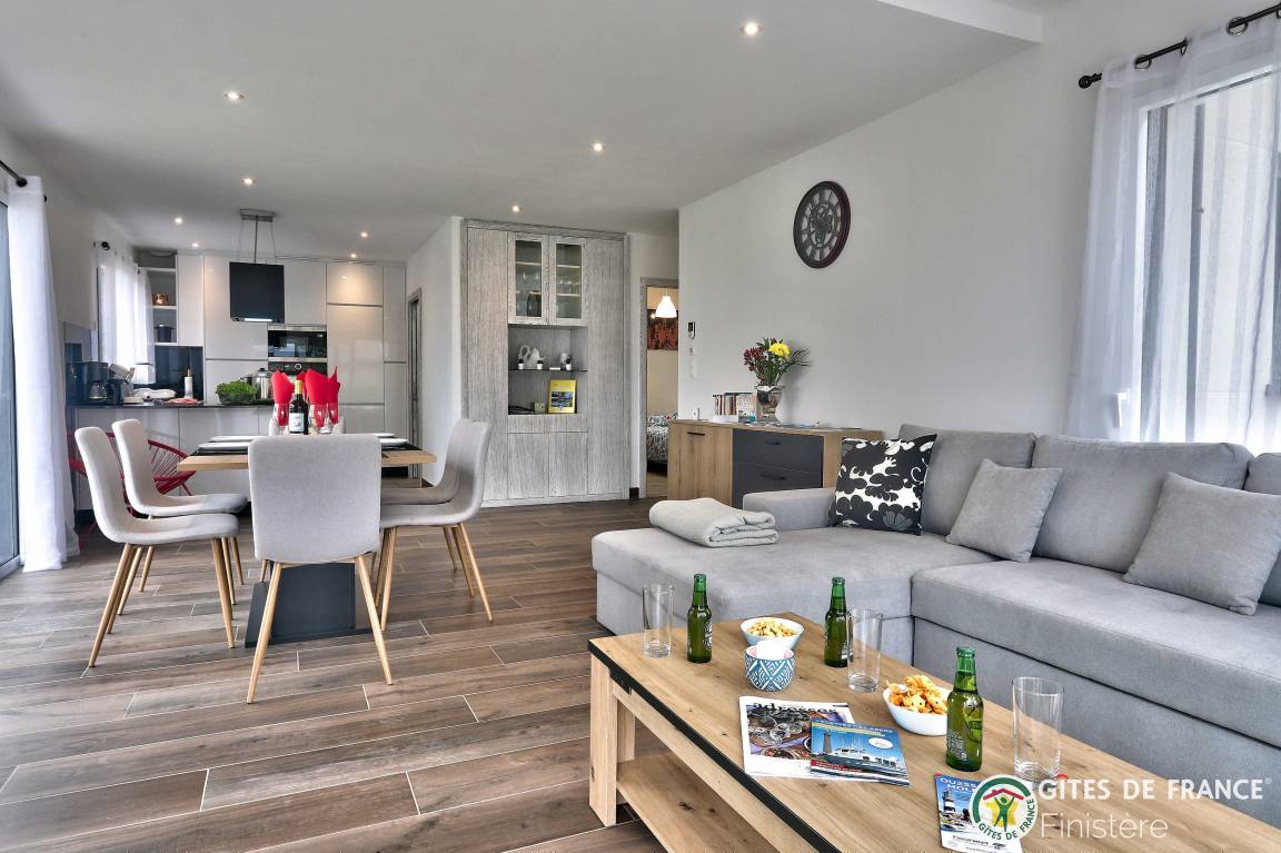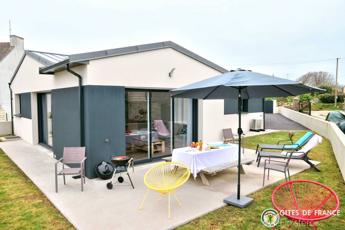 „Nous avons été ravis de notre séjour dans cette grande, belle et toute neuve maison moderne. Les espaces y sont grands, les placards nombreux. L'accès au chemin côtier est facile et très proche ainsi qu'à une petite plage. La vue sur Molène nous ravissait chaque matin clair. Un grand garage avec machine à laver et sèche linge bien utile en cas de temps humide. En résumé, nous avons passé un bon séjour.“