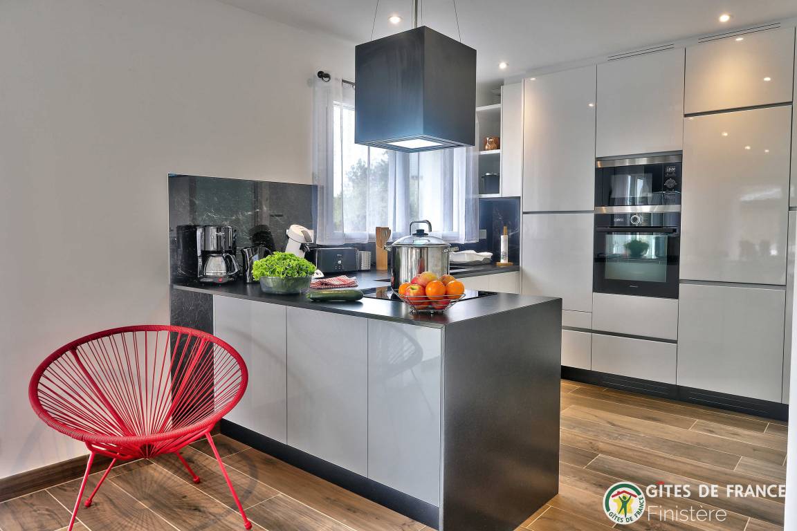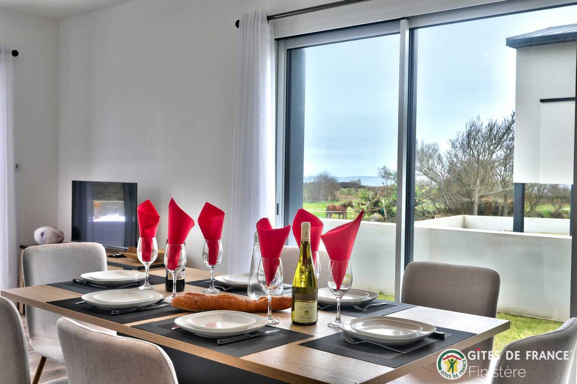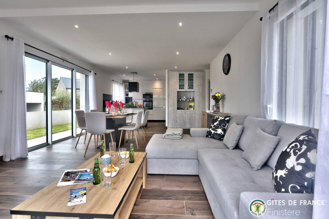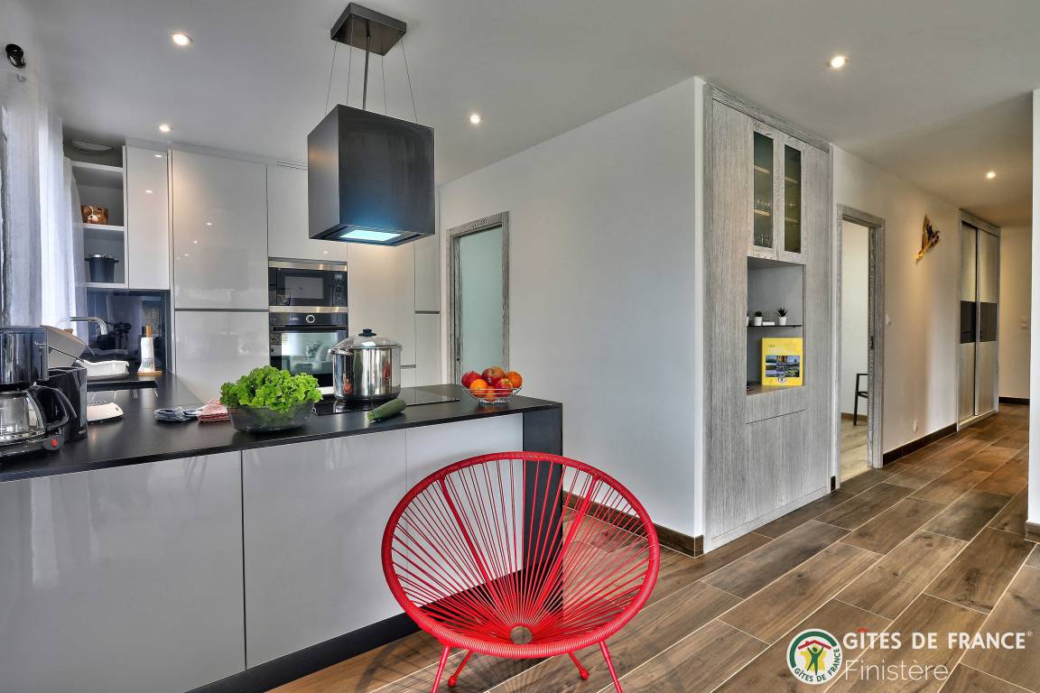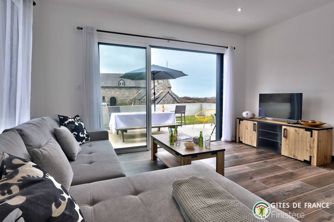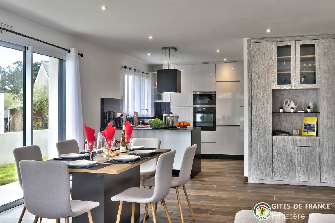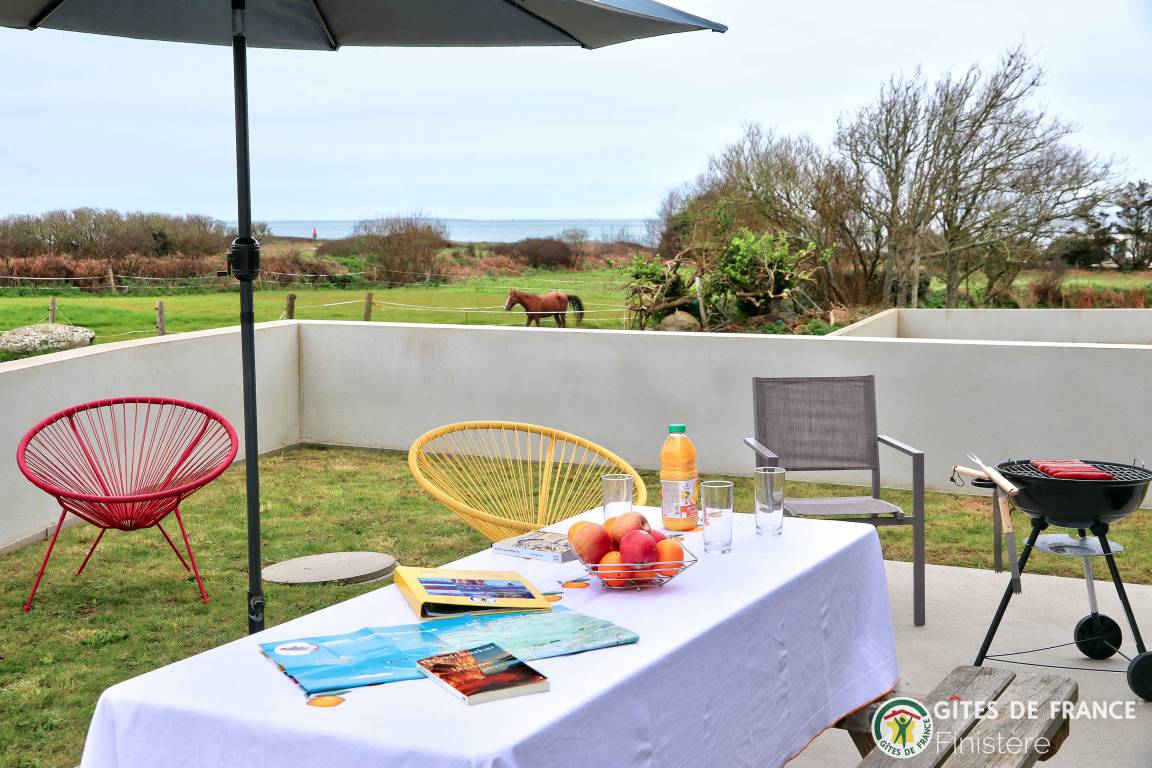 „Nous avons été ravis de notre séjour dans cette grande, belle et toute neuve maison moderne. Les espaces y sont grands, les placards nombreux. L'accès au chemin côtier est facile et très proche ainsi qu'à une petite plage. La vue sur Molène nous ravissait chaque matin clair. Un grand garage avec machine à laver et sèche linge bien utile en cas de temps humide. En résumé, nous avons passé un bon séjour.“
