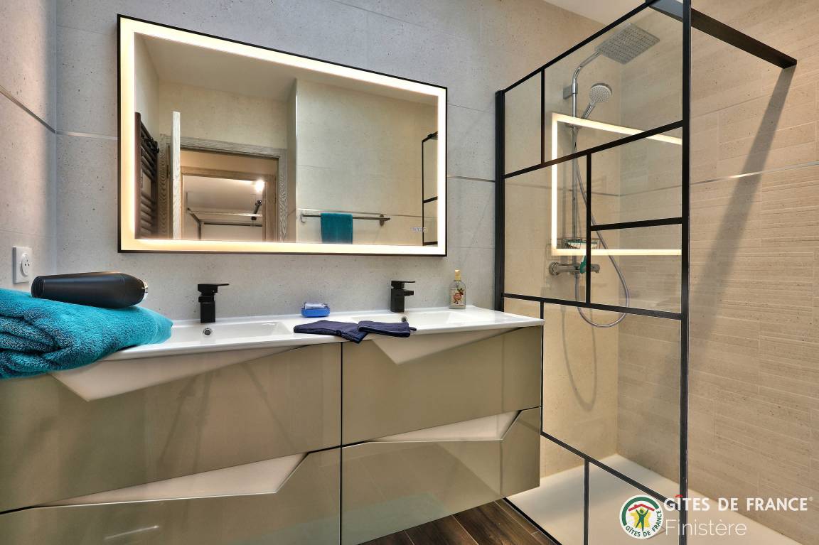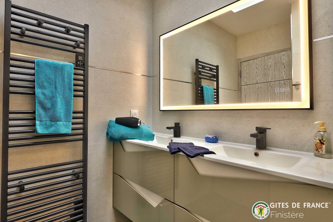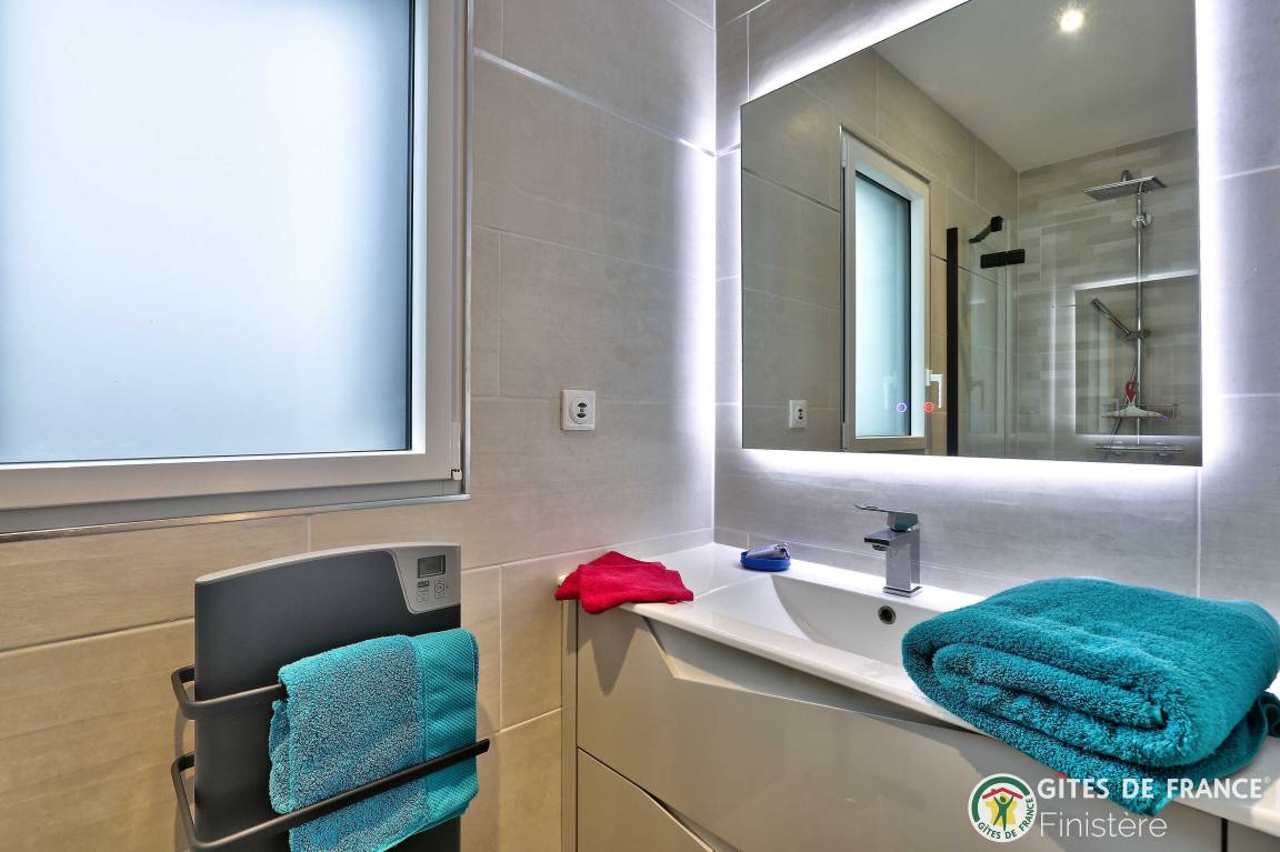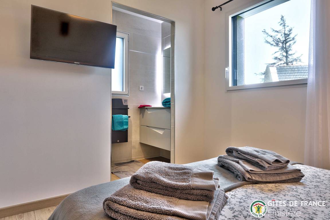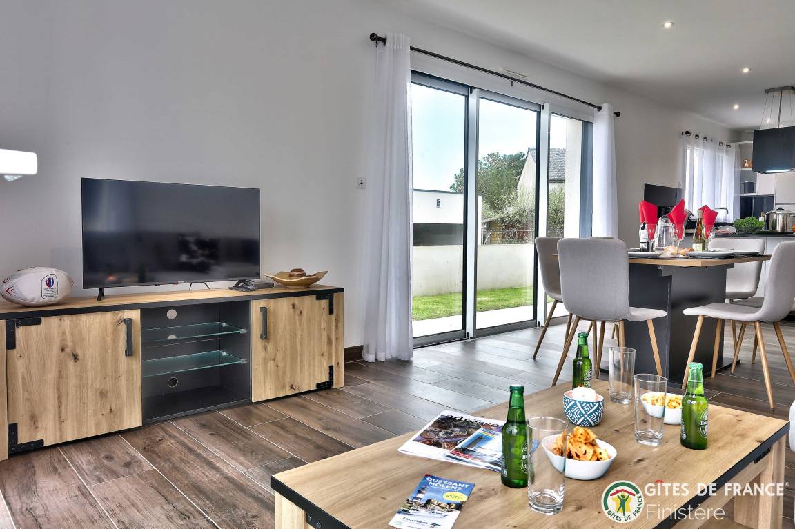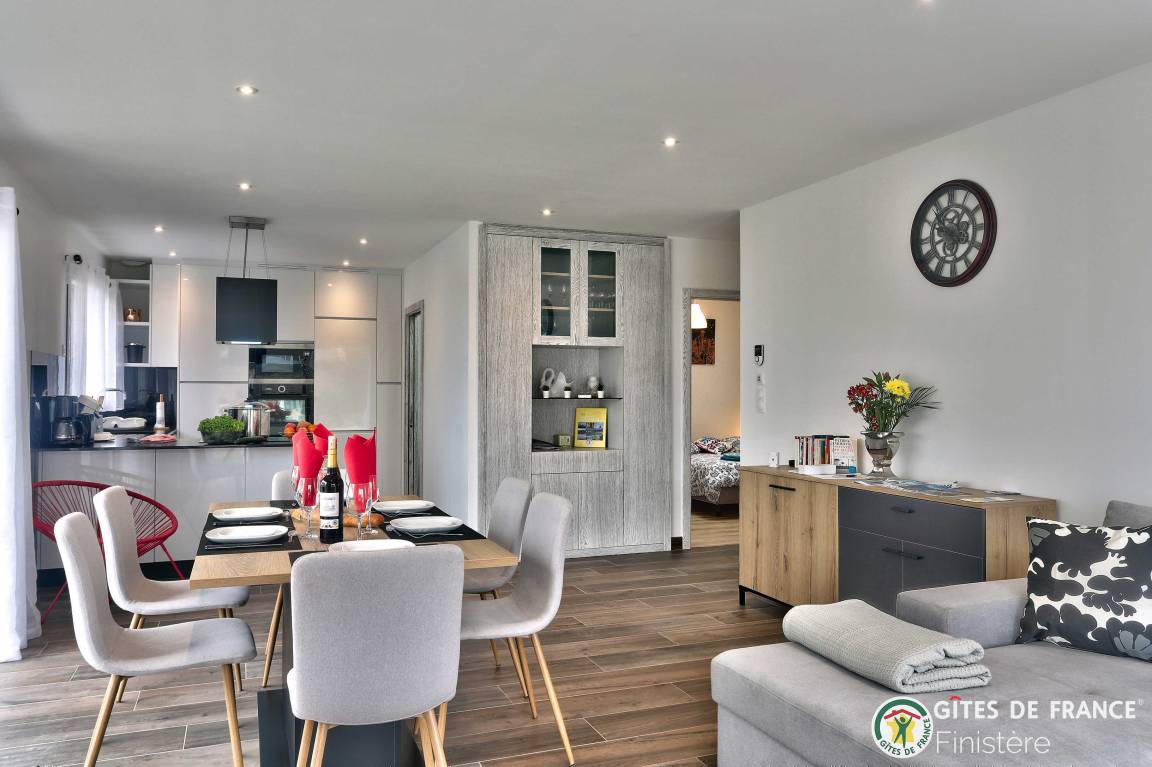 „Nous avons été ravis de notre séjour dans cette grande, belle et toute neuve maison moderne. Les espaces y sont grands, les placards nombreux. L'accès au chemin côtier est facile et très proche ainsi qu'à une petite plage. La vue sur Molène nous ravissait chaque matin clair. Un grand garage avec machine à laver et sèche linge bien utile en cas de temps humide. En résumé, nous avons passé un bon séjour.“