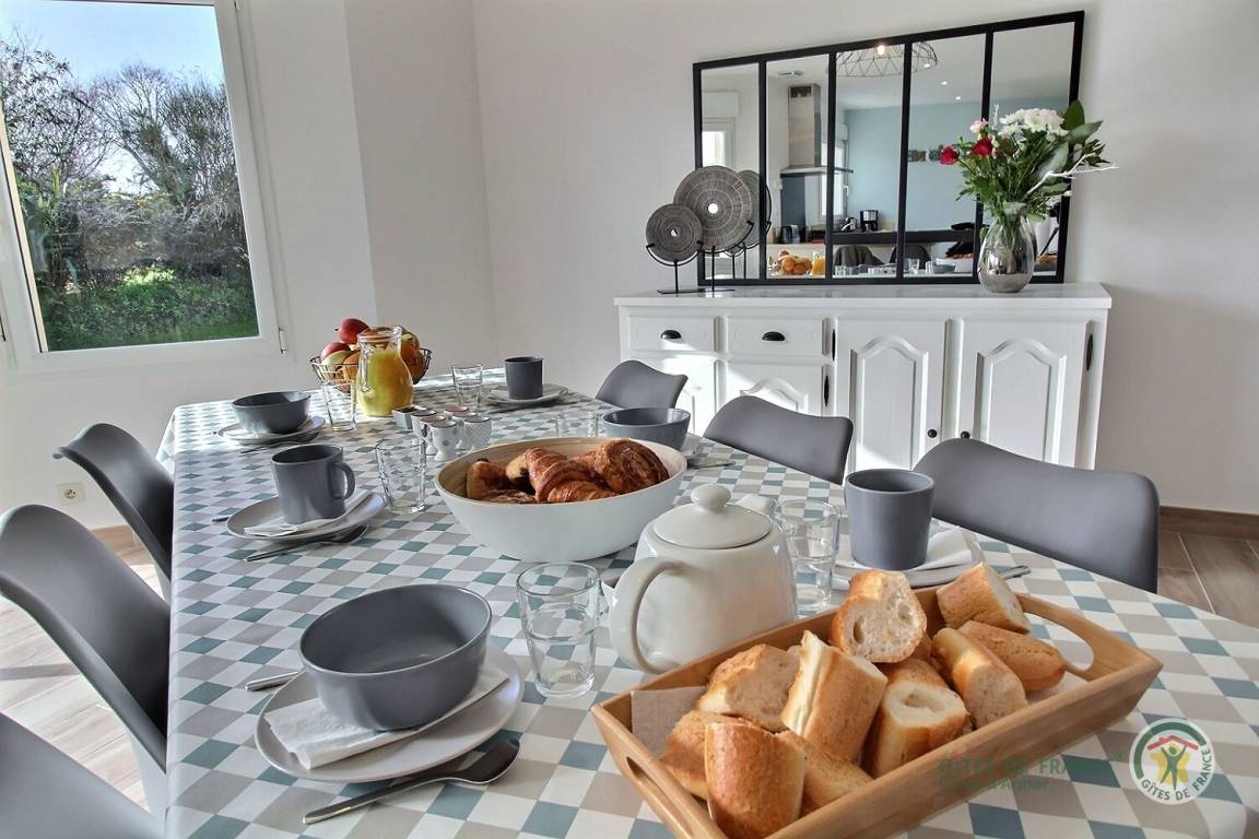 „Très bon gîte qui mérite largement ses trois étoiles. Maison impeccable pour un séjour à quatre personnes, au calme, proche de la mer. Petit plus, le soleil qui a été présent toute la semaine !“