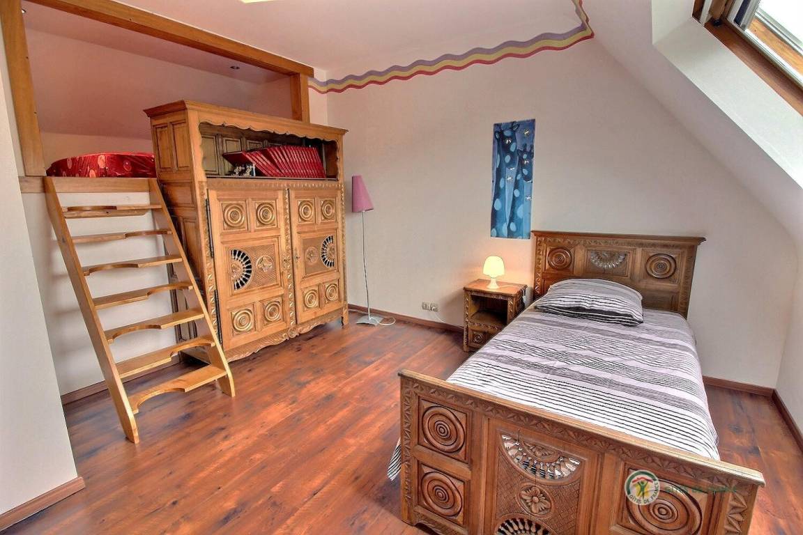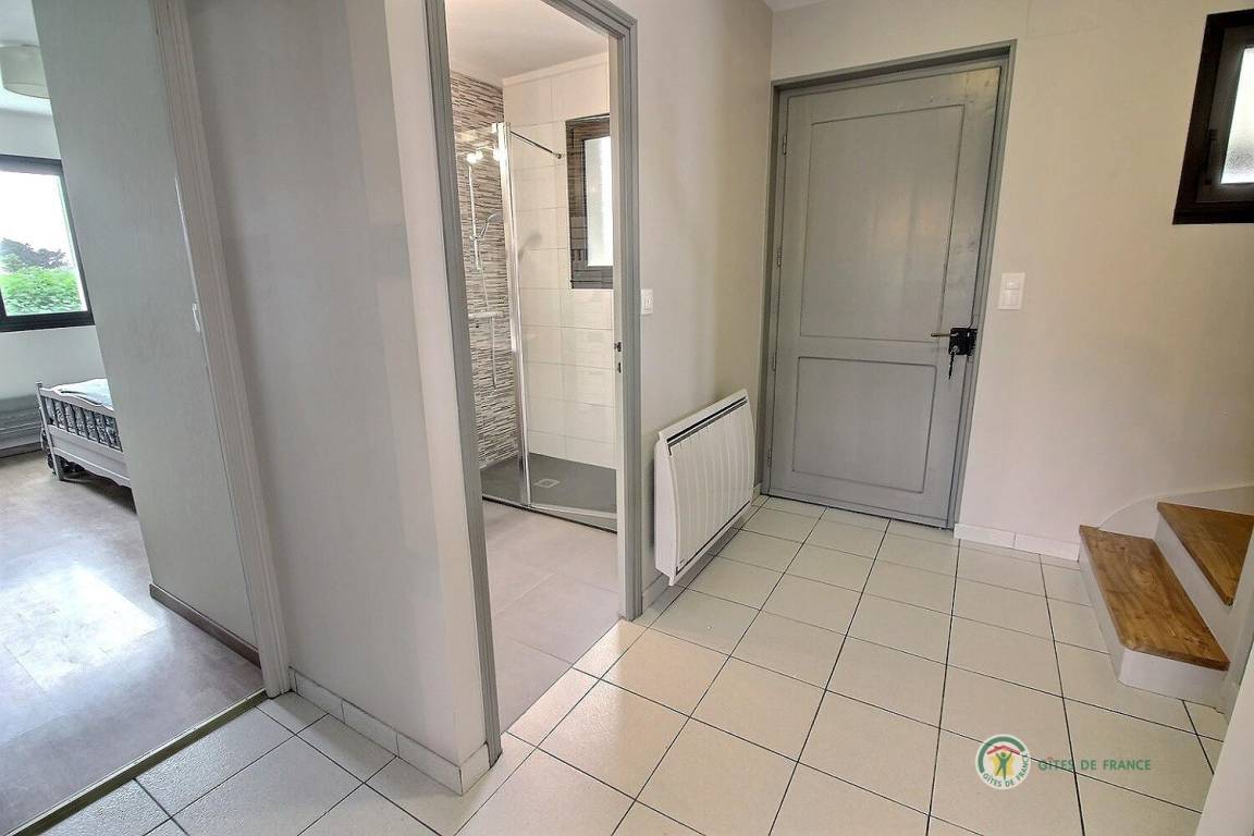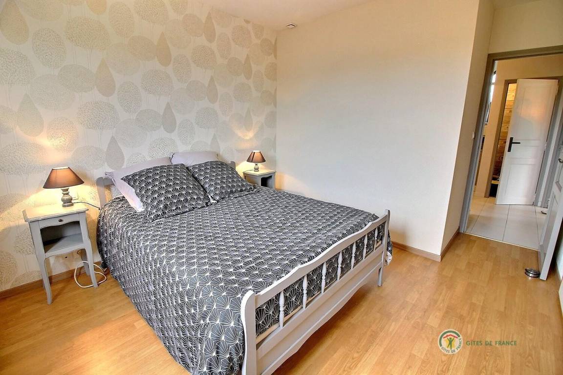 Ihre Ferienwohnung umfasst im Erdgeschoss: eine Eingangshalle, ein Badezimmer mit Dusche, ein separates WC, eine schöne Einbauküche, die zu einem Wohnzimmer und einer über 2 Stufen zugänglichen Lounge mit Kamin offen ist (Holz nicht vorhanden), eine Waschküche, 1 Schlafzimmer mit 1 Bett 140x190. Obergeschoss: auf halber Ebene ein Büro, 2 Schlafzimmer mit 2 90x190-Betten und 1 140x190-Bett, Badezimmer mit Whirlpool, separates WC. Schöne Terrasse von 30 m² mit Blick auf eine schöne offene Rasenfläche von 1000 m². Privater Parkplatz im Hof von 60 m² vor dem Ferienhaus. Garage für 1 Auto, Motorräder oder Fahrräder vorhanden.