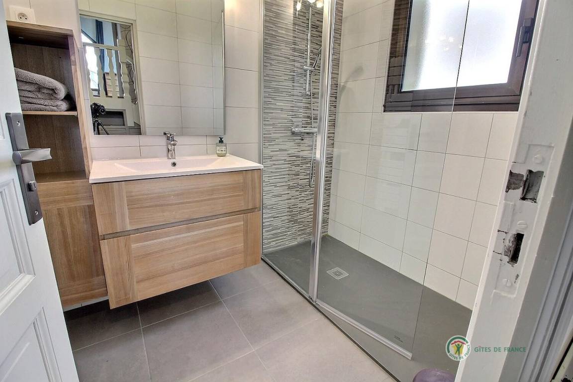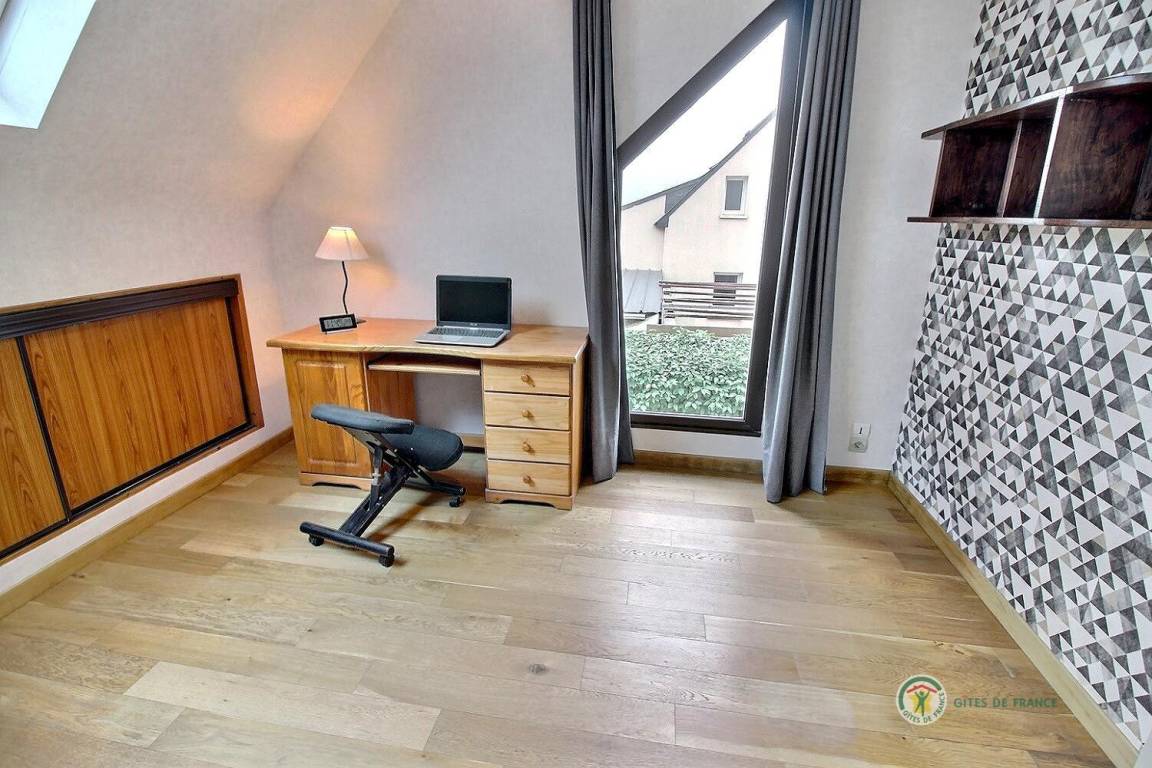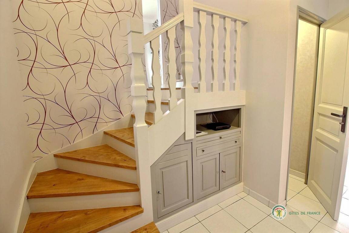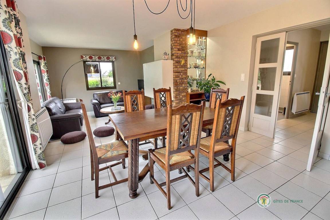 Ihre Ferienwohnung umfasst im Erdgeschoss: eine Eingangshalle, ein Badezimmer mit Dusche, ein separates WC, eine schöne Einbauküche, die zu einem Wohnzimmer und einer über 2 Stufen zugänglichen Lounge mit Kamin offen ist (Holz nicht vorhanden), eine Waschküche, 1 Schlafzimmer mit 1 Bett 140x190. Obergeschoss: auf halber Ebene ein Büro, 2 Schlafzimmer mit 2 90x190-Betten und 1 140x190-Bett, Badezimmer mit Whirlpool, separates WC. Schöne Terrasse von 30 m² mit Blick auf eine schöne offene Rasenfläche von 1000 m². Privater Parkplatz im Hof von 60 m² vor dem Ferienhaus. Garage für 1 Auto, Motorräder oder Fahrräder vorhanden.