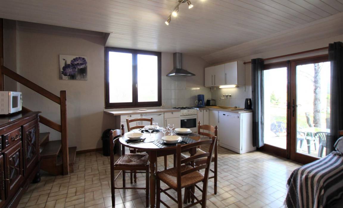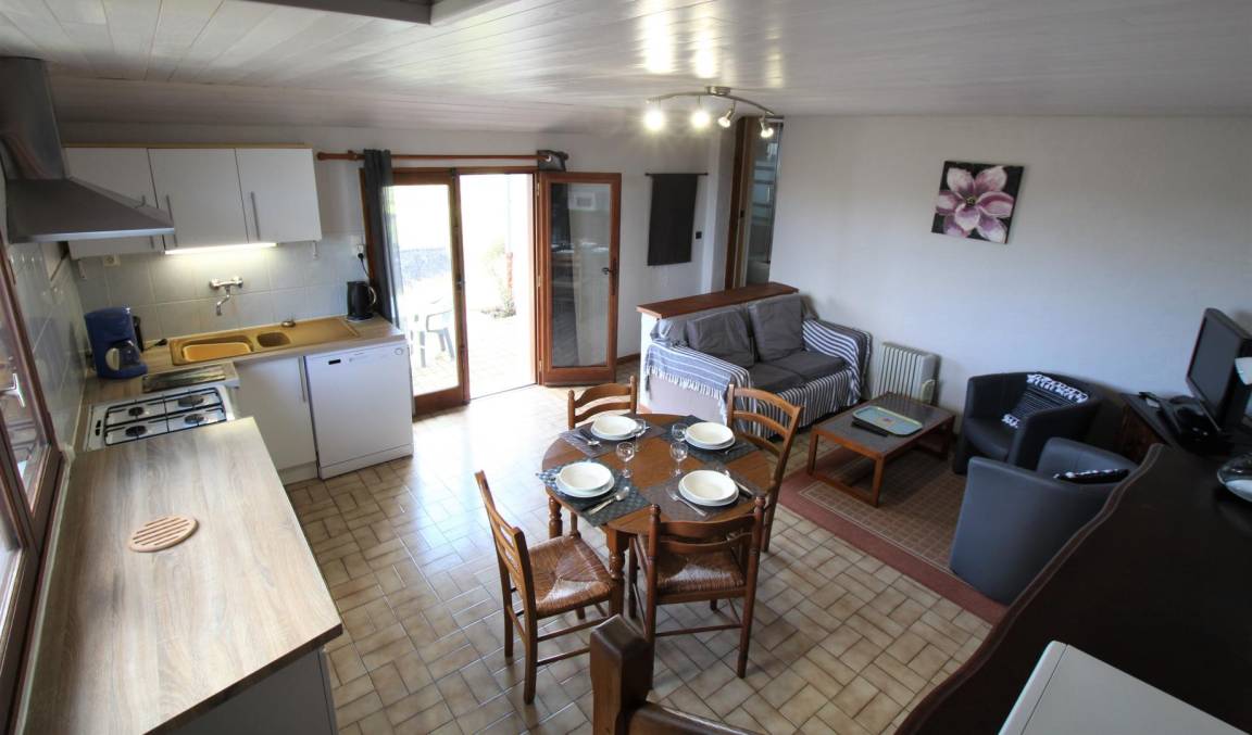 „Gîte pas très moderne et sombre a rapport aux photos, vieux robinet qui fuit dans la cuisine, canapé inconfortable compteur électrique fit beaucoup de bruit la nuit. Point positif une belle vue du gîte“