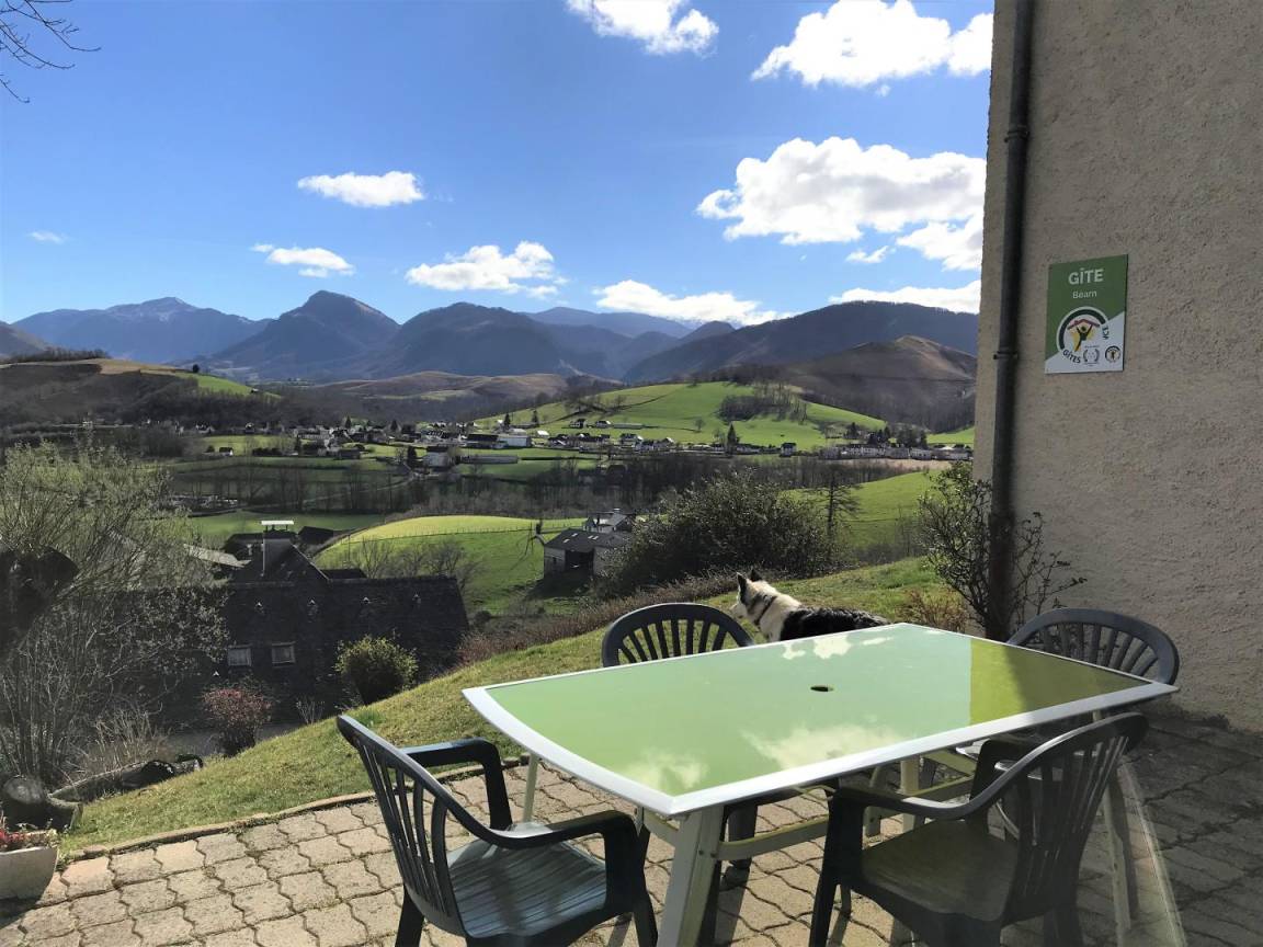 „Très bon séjour dans gite bien équipé bien exposé au calme avec magnifique vue sur la vallée. propriétaire bearnais discret et très sympathique sans oublier la chienne laura. gite bien situé commerces à proximités Très belle région à visiter. habitants chaleureux, joli village, à recommander“