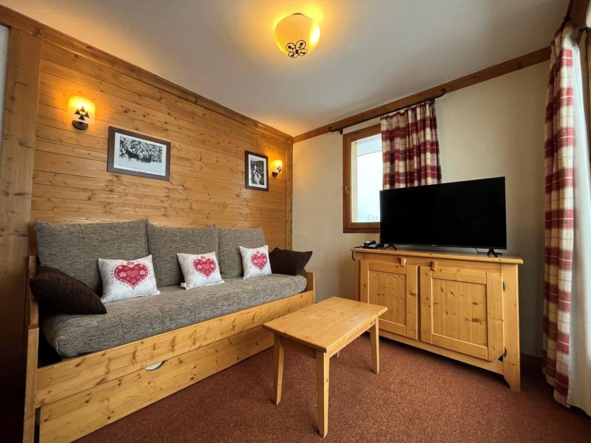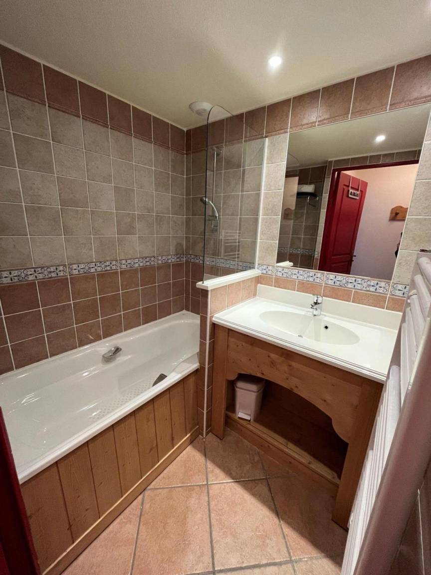 Fläche von ungefähr 38 m². Erdgeschoss. Orientierung : Nord, West. Wohnzimmer mit Ausziehschlafcouch für 2 Personen, TV. Schlafzimmer mit Doppelbett. Schlafzimmer mit 2 Stockbetten. Kochnische mit Mikrowellengrill, Geschirrspülmaschine, 3 Glaskeramikkochfelder, Kühlschrank. Badezimmer mit Badewanne. Badezimmer mit Dusche. separates WC. Balkon. Die oberen Betten sind nicht für Kinder unter 6 Jahren geeignet.