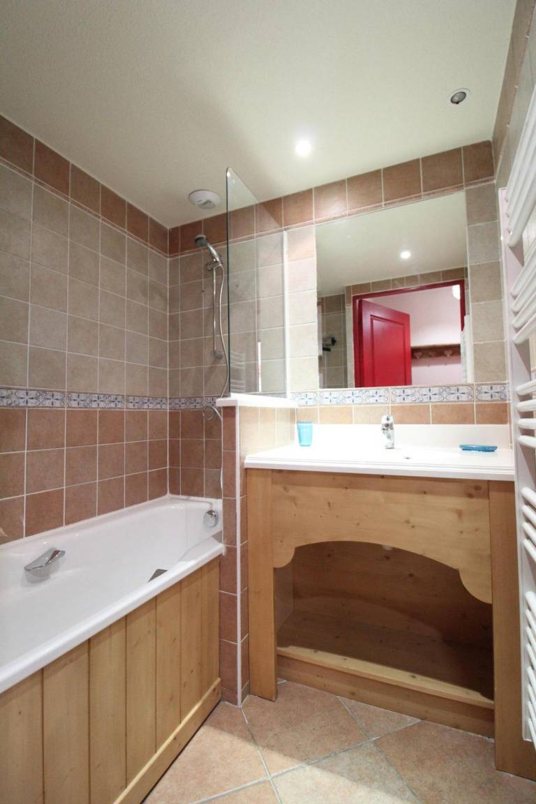 Fläche von ungefähr 40 m². 2te Etage. Orientierung : Ost, Süd, Süd-West. Wohnzimmer mit Klappschlafcouch. Schlafzimmer mit Doppelbett. offener Schlafbereich mit 2 Stockbetten. Kochnische mit Mikrowellengrill, Dunstabzugshaube, Geschirrspülmaschine, kleiner Backofen, 3 Glaskeramikkochfelder, Kühlschrank. Badezimmer mit Badewanne, Waschbecken. separates WC. Waschräume mit Dusche. Balkon. Die oberen Betten sind nicht für Kinder unter 6 Jahren geeignet.