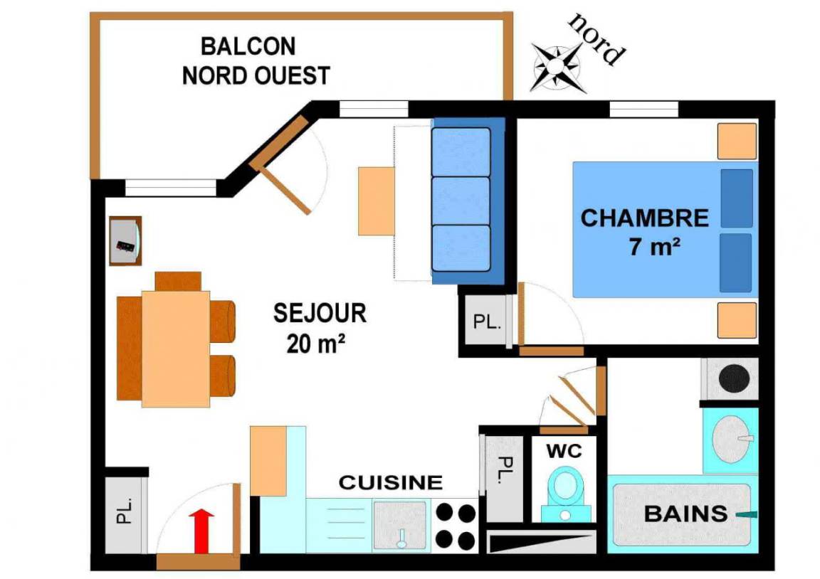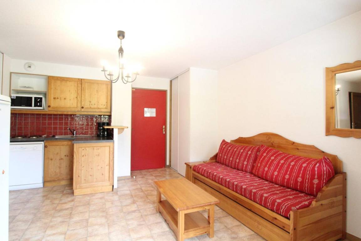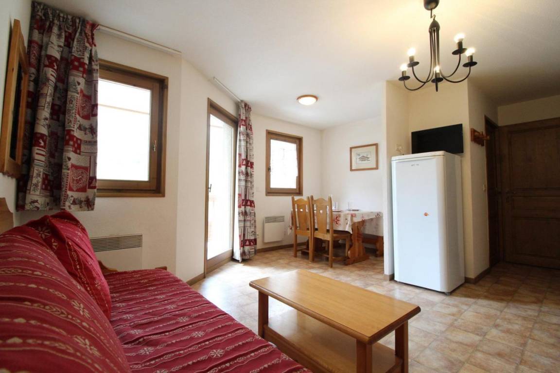 Die Residenz Le Bonheur des Pistes*** besteht aus zwei Chalets, die aus traditionellen Materialien, Stein und Holz, mit einem Dach aus Steinplatten aus der Region gebaut wurden, wodurch sie sich perfekt in die unberührte Alpenlandschaft des Val Cenis einfügt. Sie bietet einen wirklich herrlichen Panoramablick auf das Vanoise-Gebirge, einschließlich seines höchsten Gipfels: der Dent Parachée (der gezackte Zahn). Die Residenz bietet Ihnen 70 voll ausgestattete und komfortable Apartments auf 4 Etagen (mit Aufzügen). Alle Apartments sind gemütlich mit Kiefernmöbeln im Bergstil eingerichtet und verfügen über einen Fernseher, eine Küche mit Mikrowelle/Grill, Geschirrspüler, 4 Elektrokochplatten und einen Balkon. Fläche von ungefähr 34 m². 2te Etage. Orientierung : Nord, West, Nord-West. Wohnzimmer mit Ausziehschlafcouch für 2 Personen. Schlafzimmer mit Doppelbett. Küche mit Kaffeemaschine, Mikrowellengrill, Geschirrspülmaschine, 4 elektronische Herdplatten, Kühlschrank. separates WC. Badezimmer mit Badewanne. Balkon.
