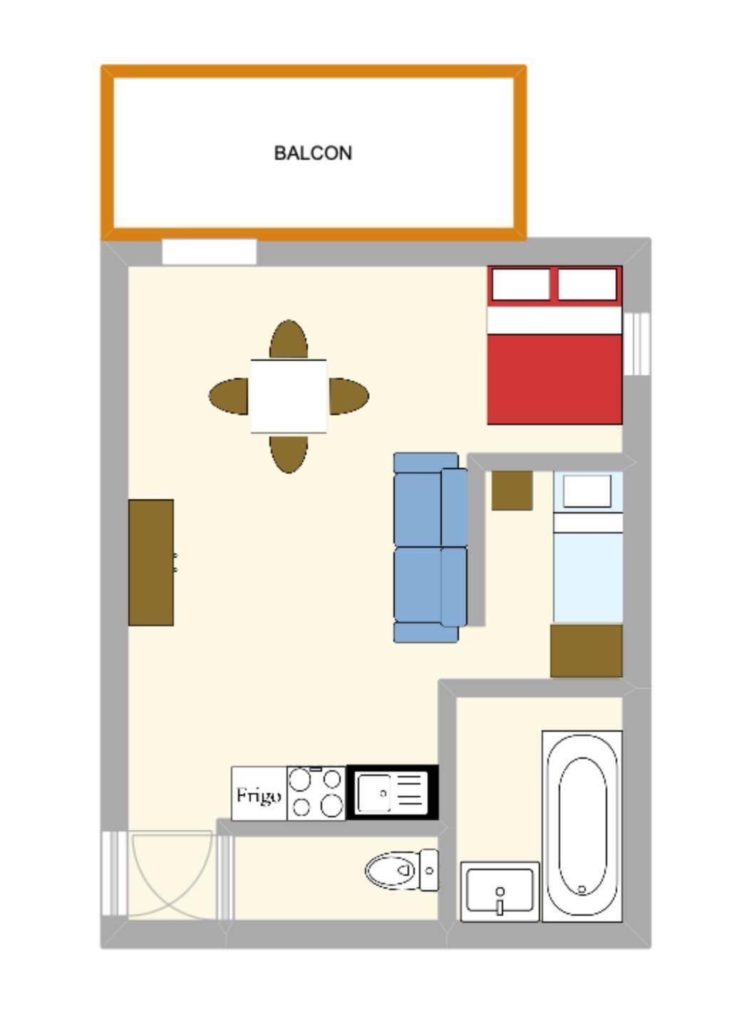 27 m² Studio ∙ 1 Schlafzimmer ∙ 4 Gäste