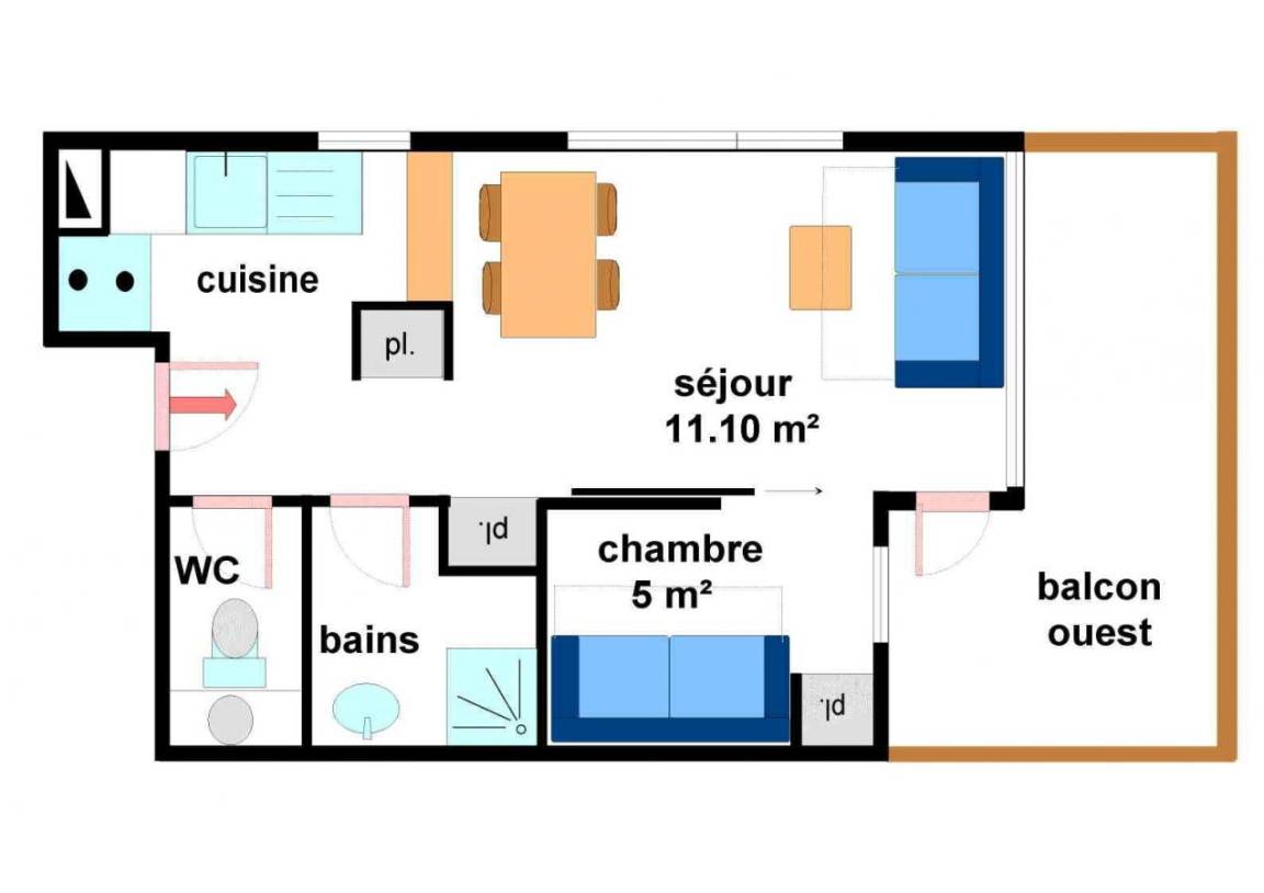28 m² Studio ∙ 1 Schlafzimmer ∙ 4 Gäste