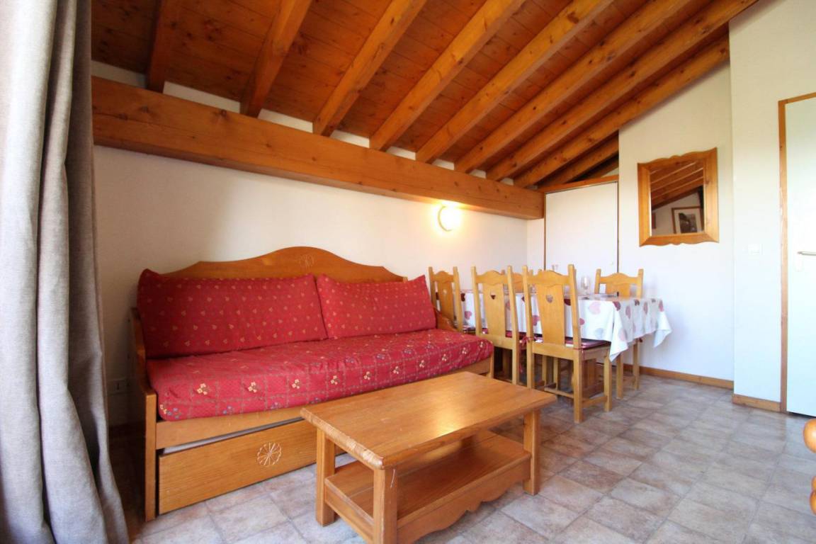 Fläche von ungefähr 39 m². 3te Etage. Orientierung : West. Blick berg (Dent Parrachée). Wohnzimmer mit Ausziehschlafcouch für 2 Personen. Schlafzimmer mit Doppelbett. Schlafzimmer mit Stockbetten. Kochnische mit Mikrowellengrill, Geschirrspülmaschine, 4 elektronische Herdplatten, Kühlschrank. Badezimmer mit Badewanne, Waschbecken, Haartrockner, WC. Balkon. Die oberen Betten sind nicht für Kinder unter 6 Jahren geeignet.