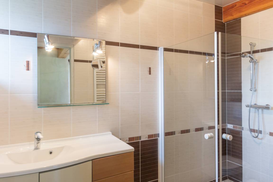 - Im Erdgeschoss: ein großes Wohnzimmer mit Lounge und Wohnzimmer, eine voll ausgestattete Küche mit Veranda, 2 Schlafzimmer mit je 1 Bett 160x200 und 1 Schlafzimmer mit 1 Bett 140, eines davon mit Bad, Wasser/WC , Toilette.