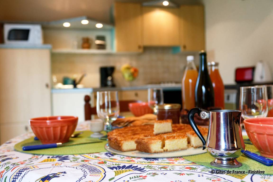 „Nous avons passé un excellent séjour, le propriétaire nous a très bien accueilli. A notre arrivée, il y avait des œufs, des légumes du jardin et un Kouign aman. Il nous a même ramené des œufs pendant le séjour. Le logement était très propre et fonctionnel avec tout le nécessaire.“