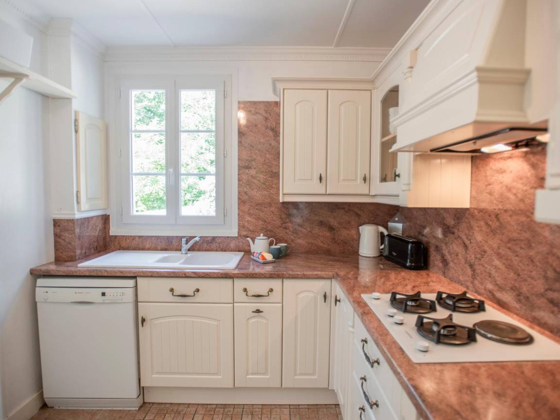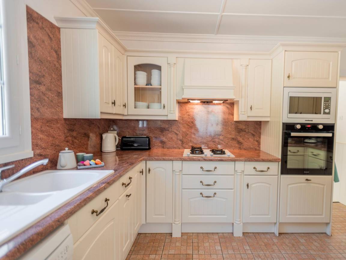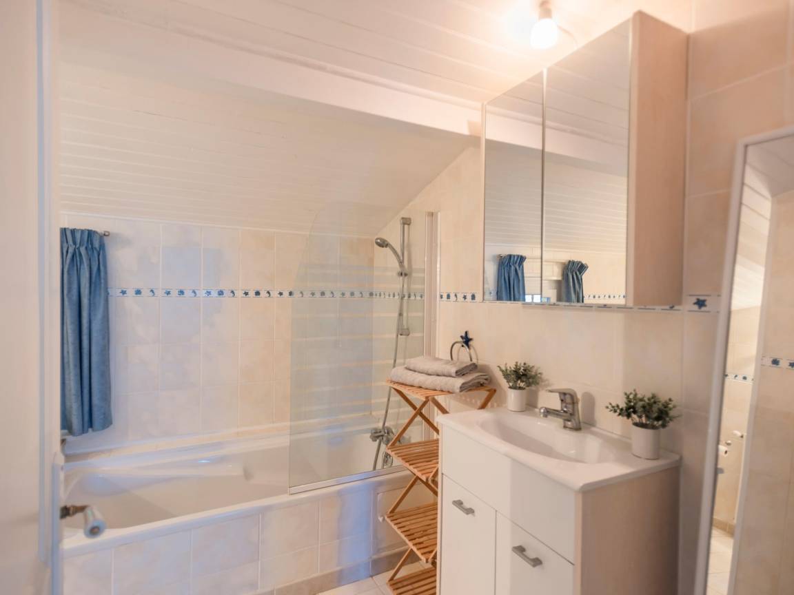 Layout : Parterre: Wohnzimmer mit Sitzecke , Esszimmer mit Esstisch , Küche mit Toaster, Kochherd(4 Kochplatten), Dunstabzugshaube, Kaffeemaschine(pads), Backofen, Mikrowelle, Geschirrspüler, Kühl-/Gefrierkombination , Schlafzimmer mit Badezimmer mit Doppelbett(180 x 200 cm), Dusche, Waschbecken, Toilette , Schlafzimmer mit Badezimmer mit Doppelbett(180 x 200 cm), Dusche, Waschbecken, Toilette , Badezimmer mit Badewanne, Waschbecken, Toilette , Wirtschaftsraum mit Tiefkühlschrank, Waschmaschine , Einzelklappbett , Gartentüren, Terrasse, Garten(alleinige Nutzung, teilweise umzäunt), Gartenmöbel, Liegen, BBQ(Gas), 3x Parkplatz, Parasol